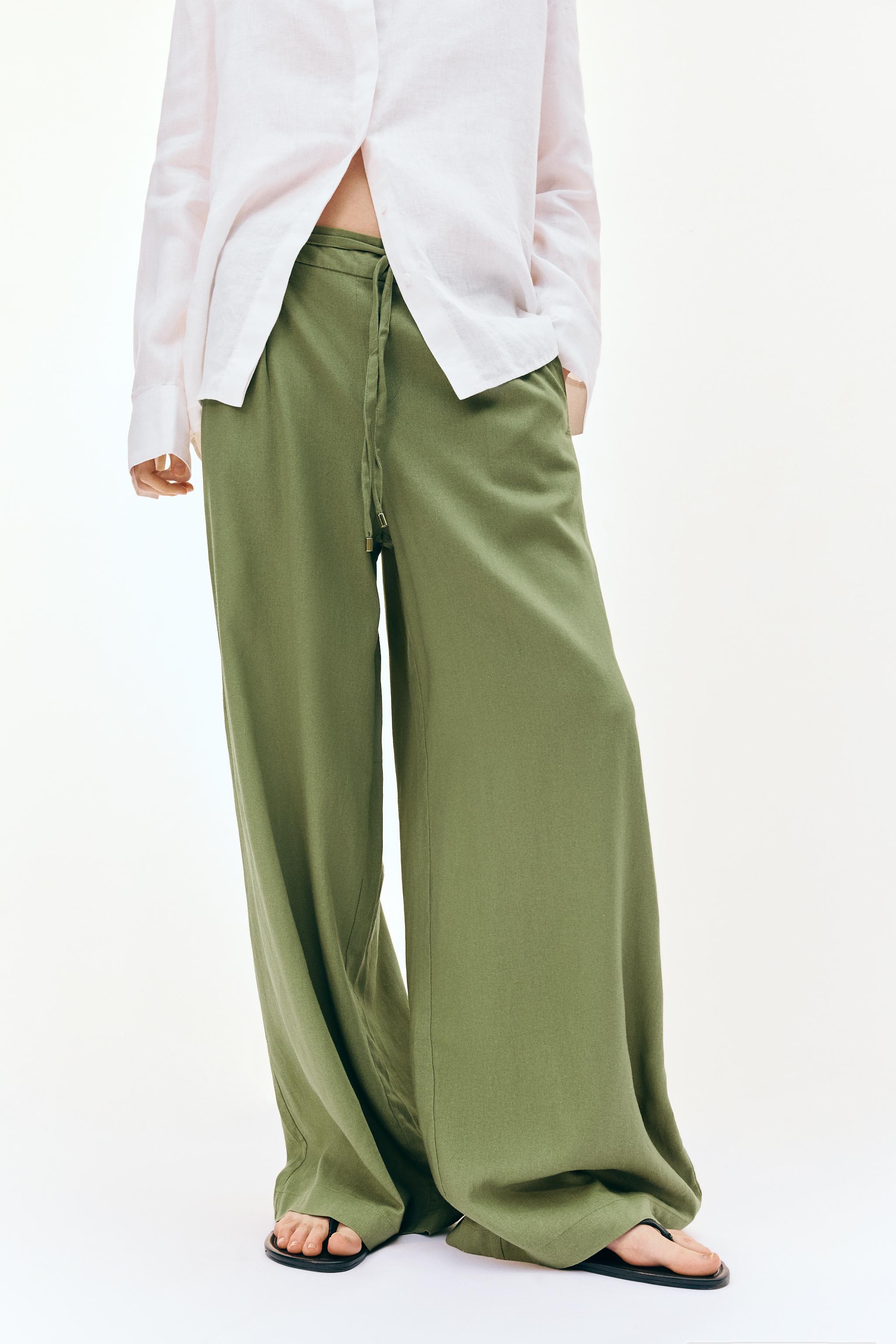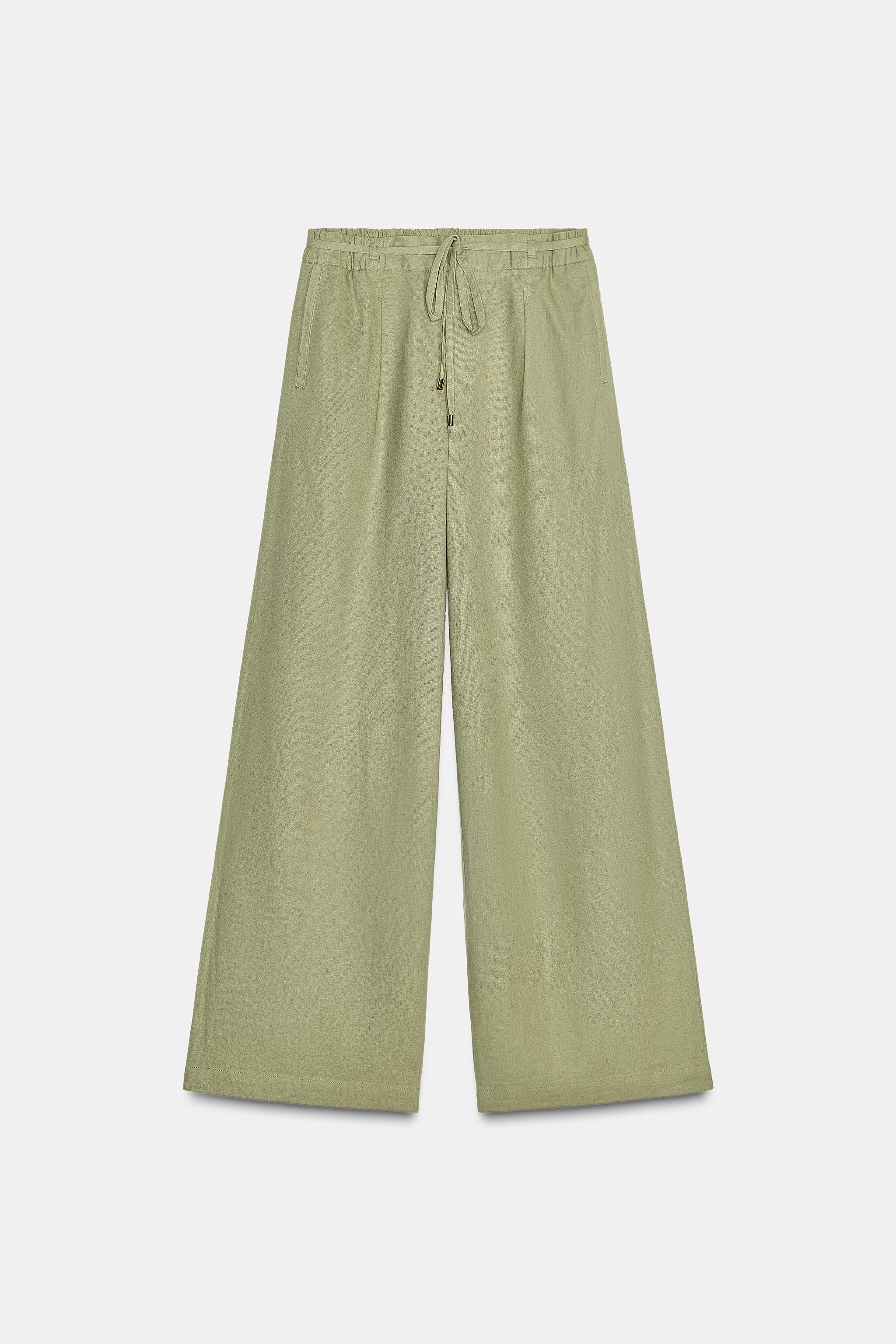 Pantalón Ancho Con Lino CinturónColores disponibles