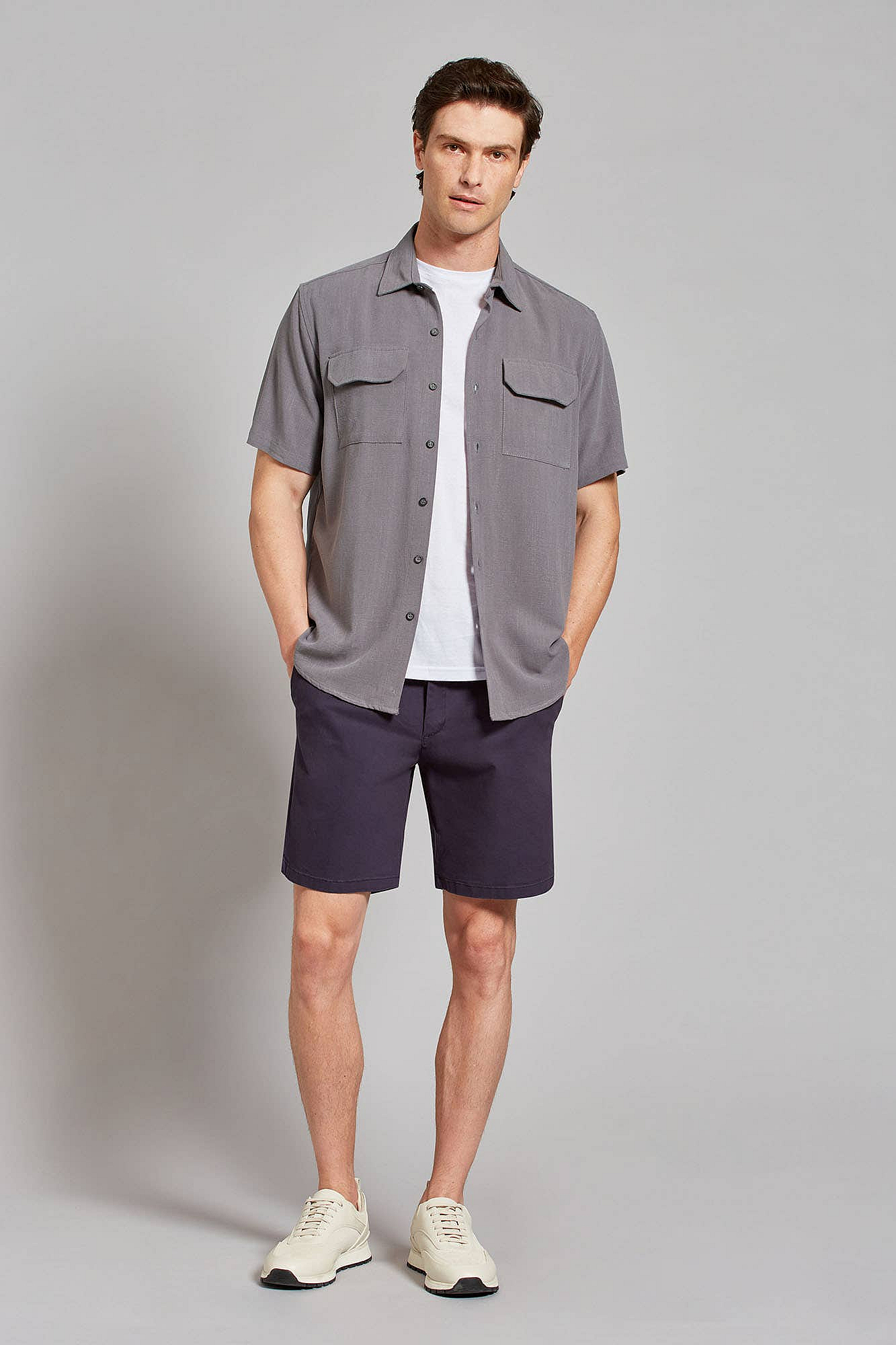 Bermuda Gabardina Lisa Slim Azul MarinoDescripción