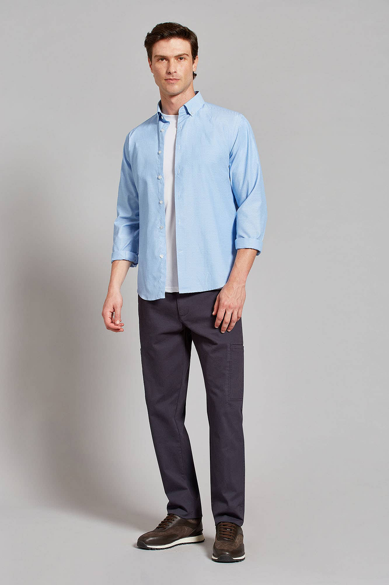 Pantalón Cargo De Gabardina Slim AzulDescripción