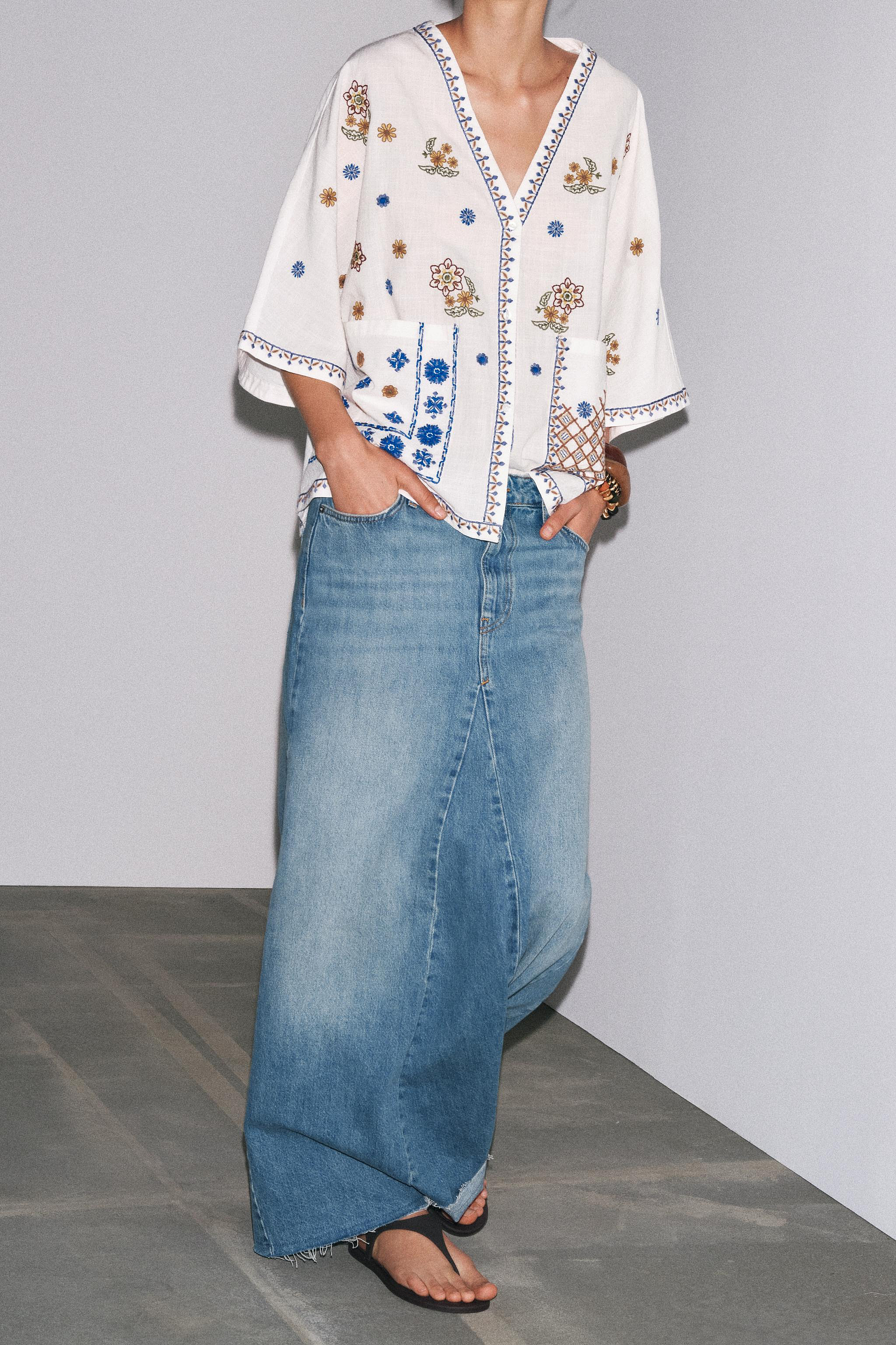 Blusa Bordados Flores Zw Collection