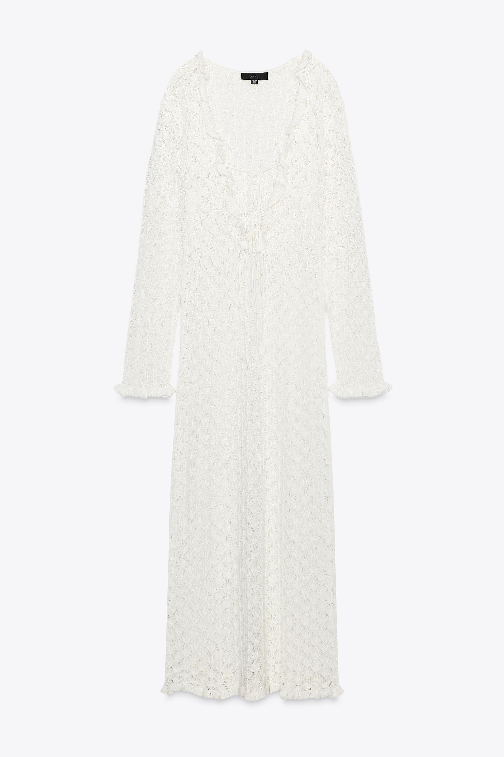 Vestido Largo Punto Pointelle VolantesDescripción