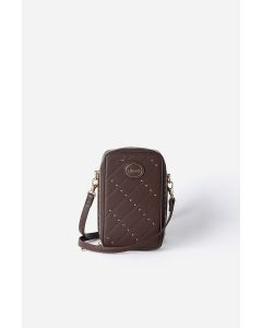 Bolso Para Celular Con Tachas, Efecto Cuero, Chocolate