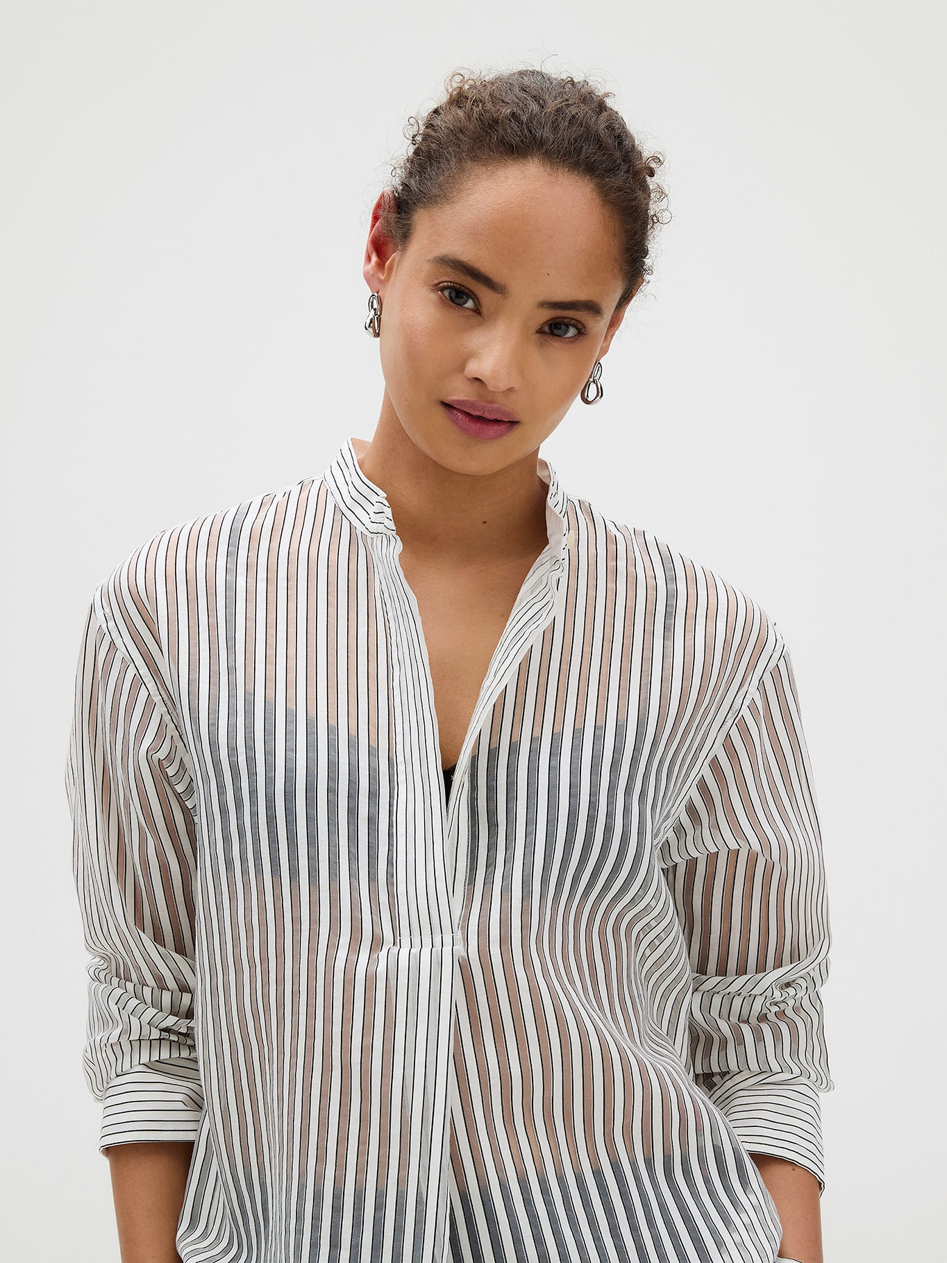 Blusa Popover De Jacquard A Rayas