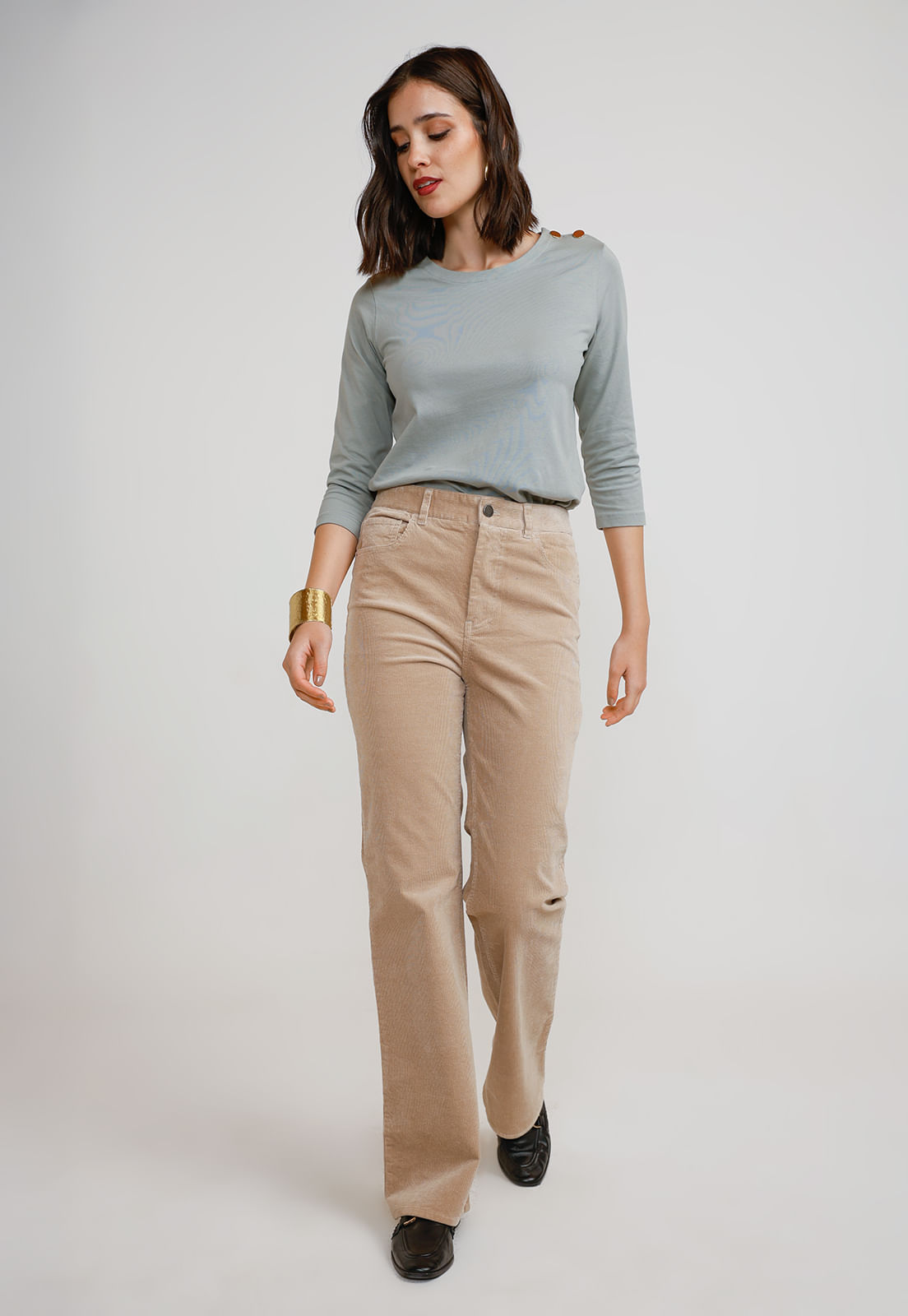 Pantalón Mujer Ishang Cotelé Beige