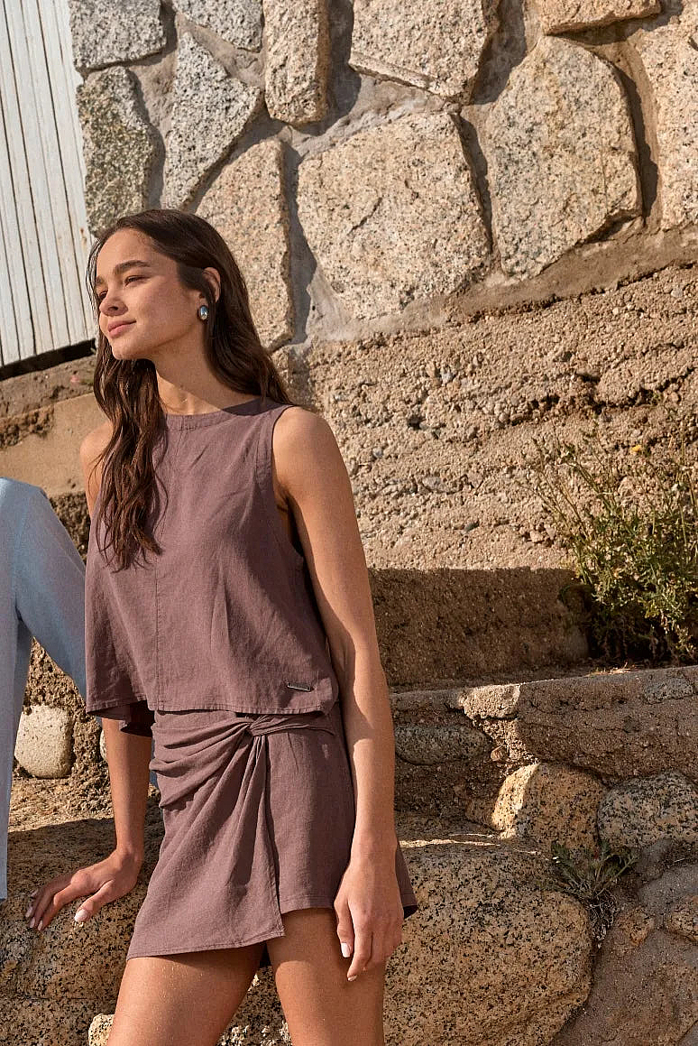 Falda Corta Nudo Café - Lino