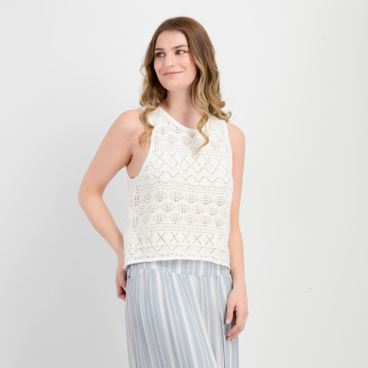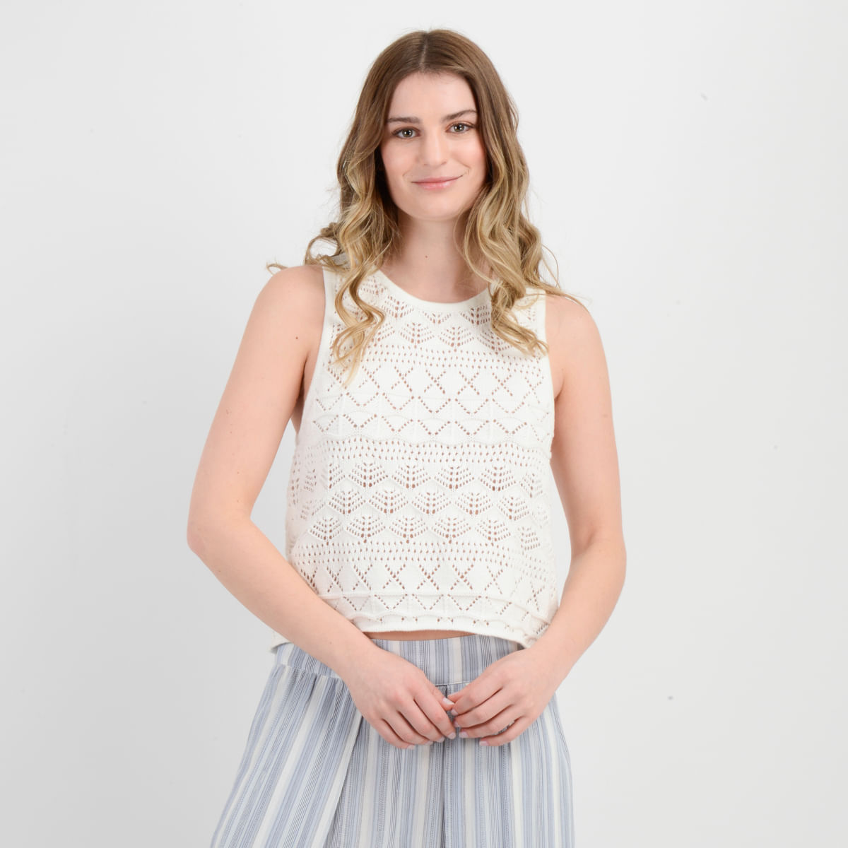 Polera Tejida Sin Mangas Cedar Beige Claro