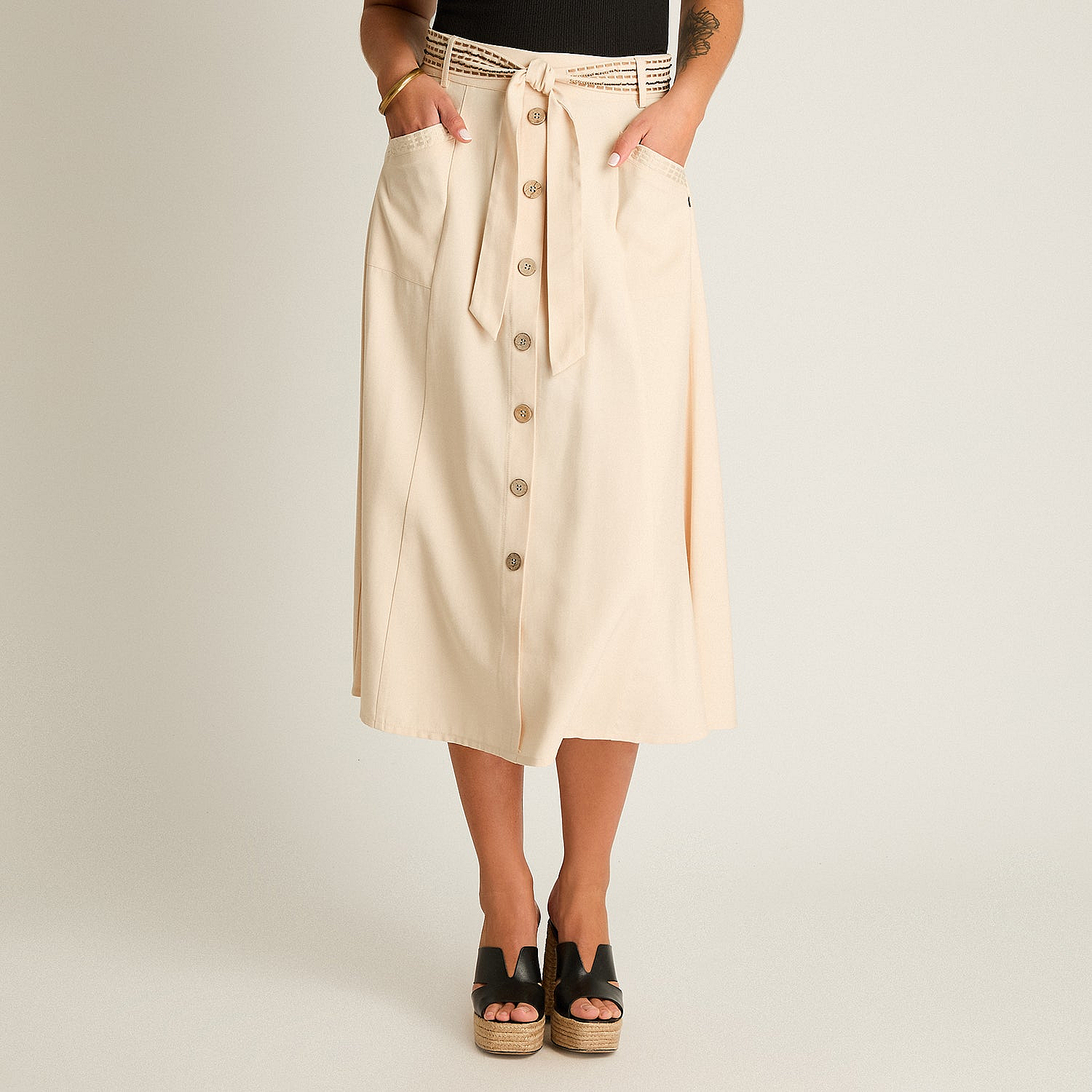 Falda Arena Midi No Elastizado Calce NormalColores disponibles