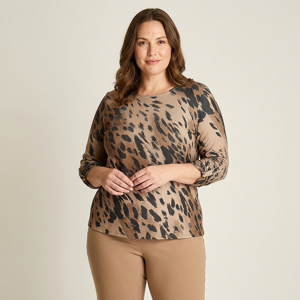 Polera Lanilla Camel Estampada Escote RedondoColores disponibles