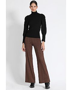 Pantalón Flare Jersey Fantasía Lurex, Tiro Medio, CaféDescripción