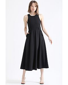 Vestido Maxi Faldon Pliegues, NegroDescripción