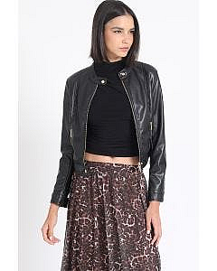 Chaqueta Crop Efecto Cuero, NegroDescripción