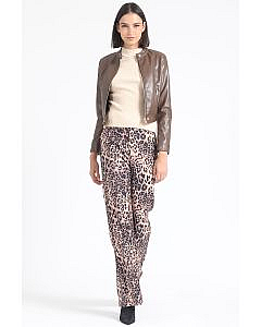 Pantalon Recto Tiro Alto, Estampado Leopardo, NegroDescripción