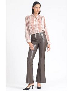 Pantalon Flare, Tiro Medio, Efecto Cuero, ChocolateDescripción