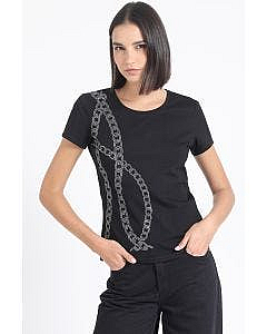 Polera Algodón Spandex, Cadena Strass, NegroDescripción