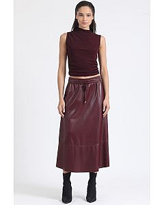 Falda Amplia Midi Efecto Cuero, VinoDescripción