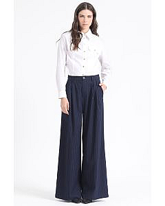 Pantalon Ancho Listado,Tiro Alto Con Pinzas, AzulDescripción