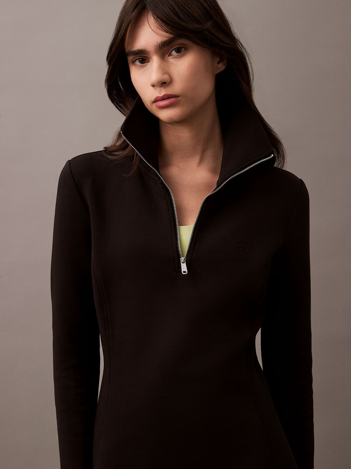 Vestido De Neopreno De Manga Larga Con Cuello Con Cremallera