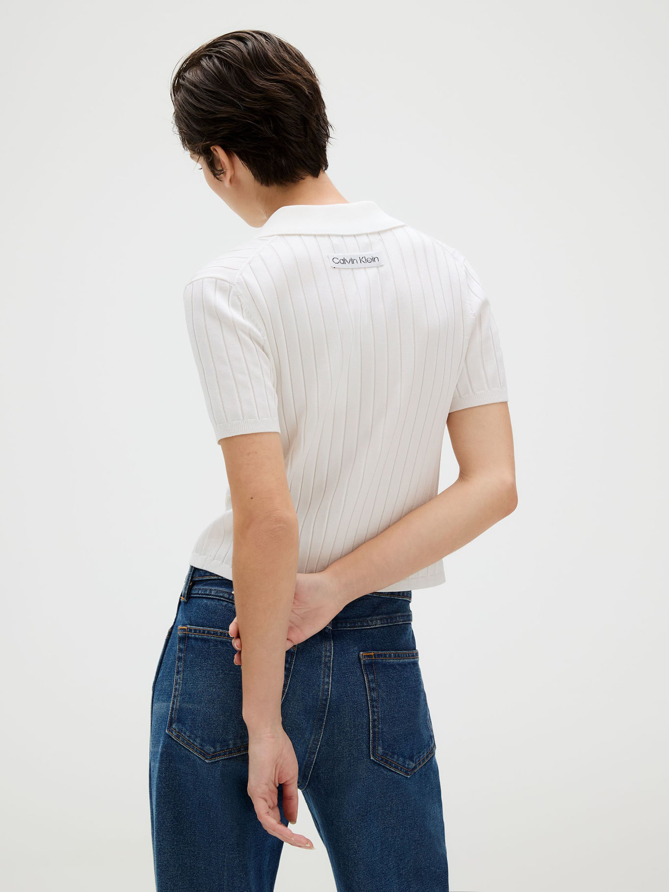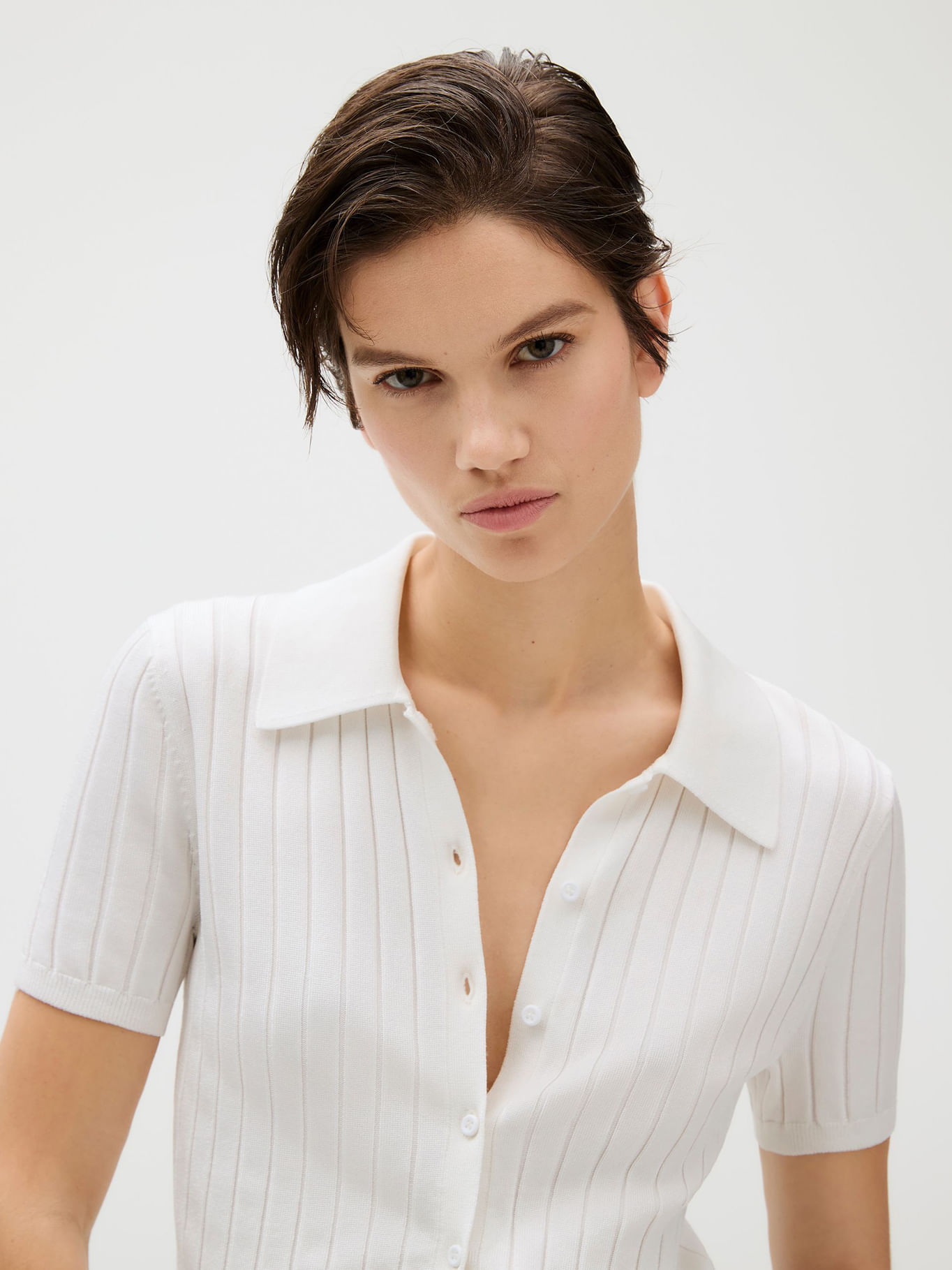 Top Tipo Polo Cropped De Punto Liso