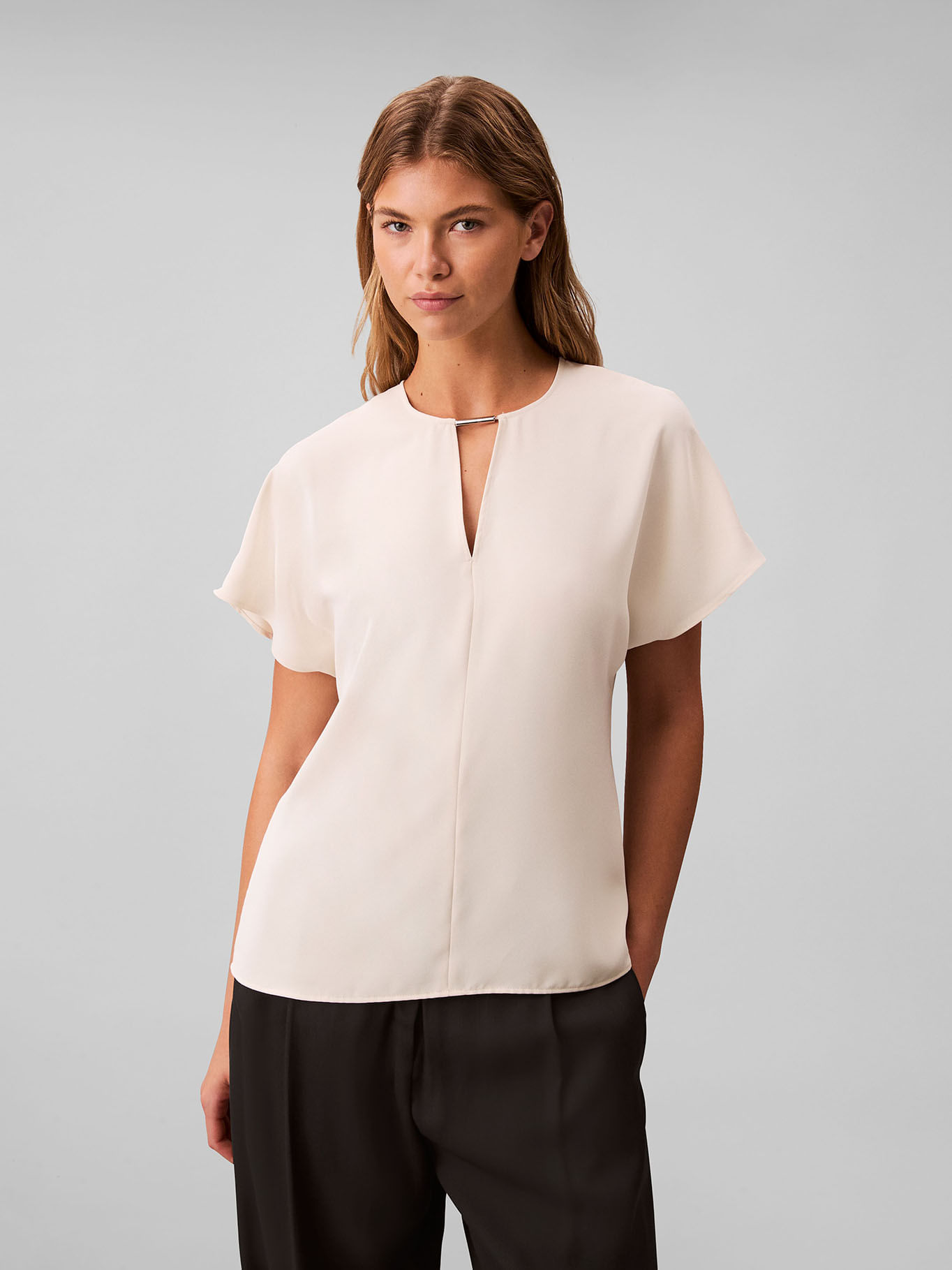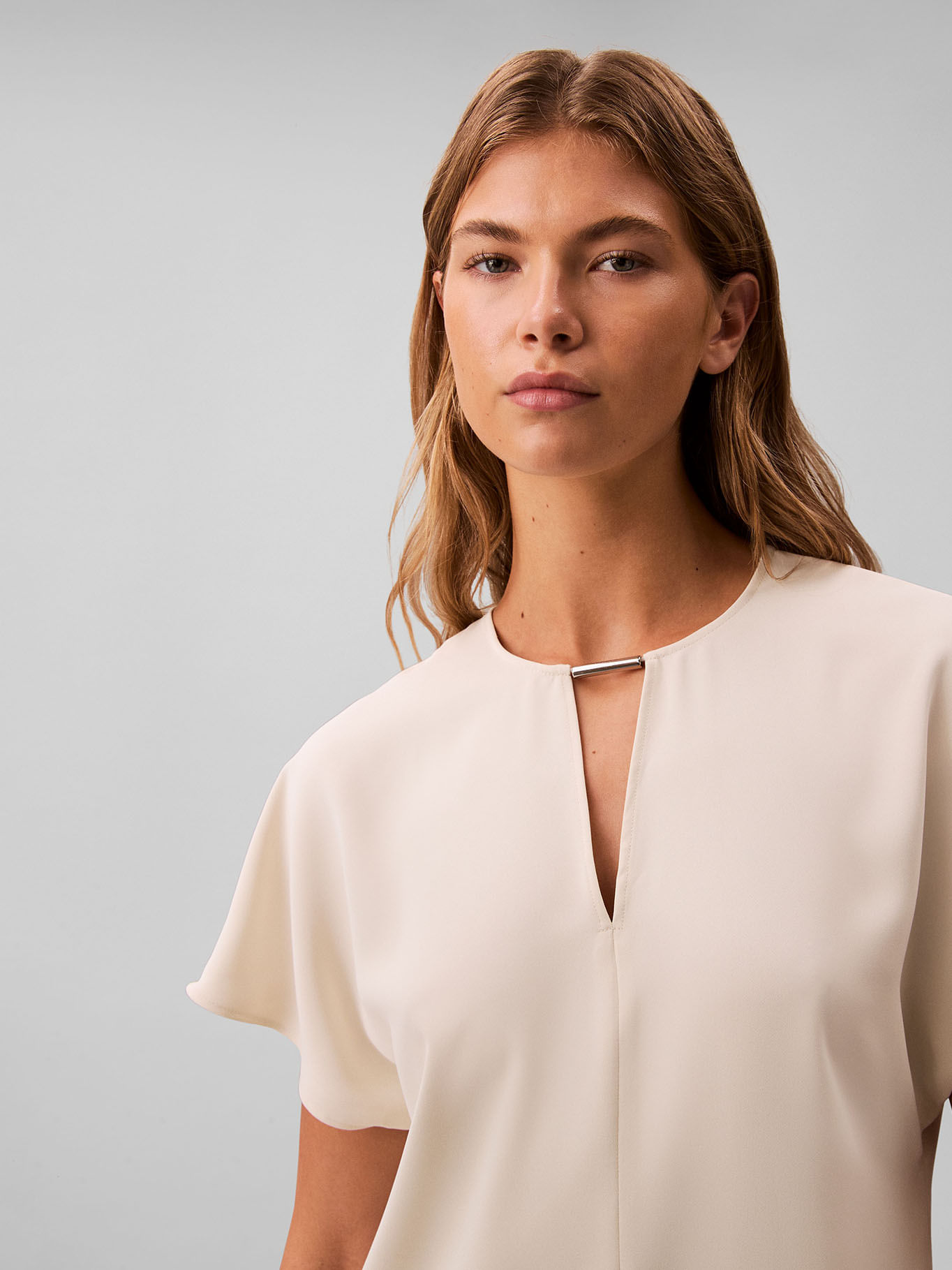 Blusa Beige De Manga Corta En Crêpe De ChineTalles disponibles