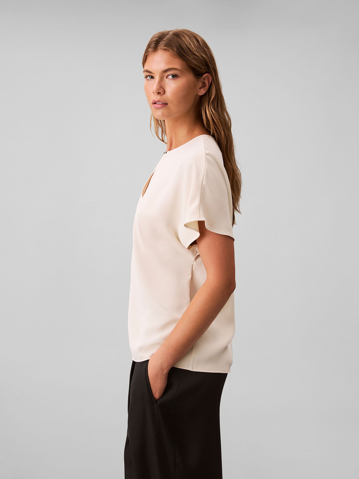 Blusa Beige De Manga Corta En Crêpe De Chine
