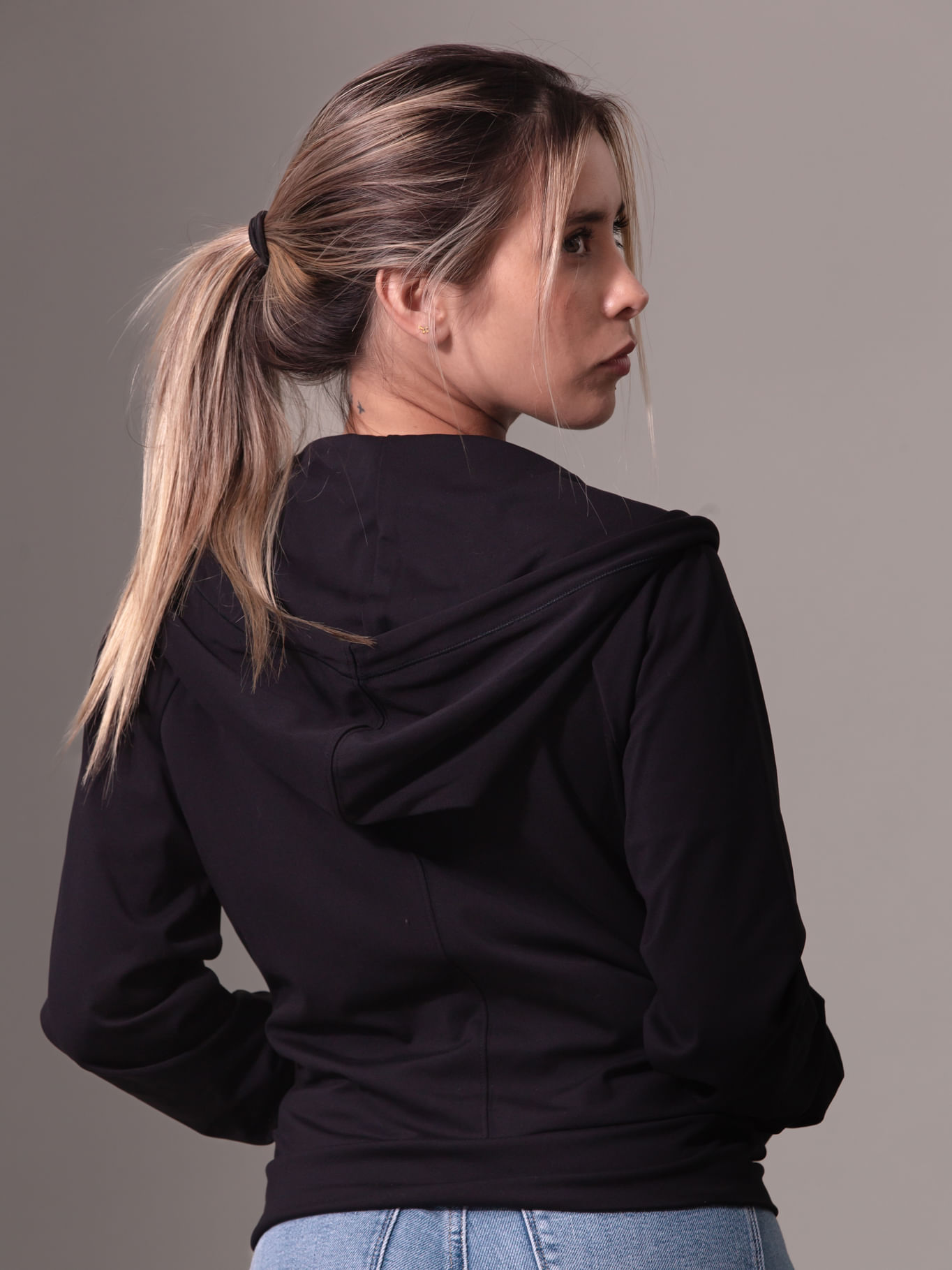 Buzo Negro Deportivo Con Capota Suave Y Elástica