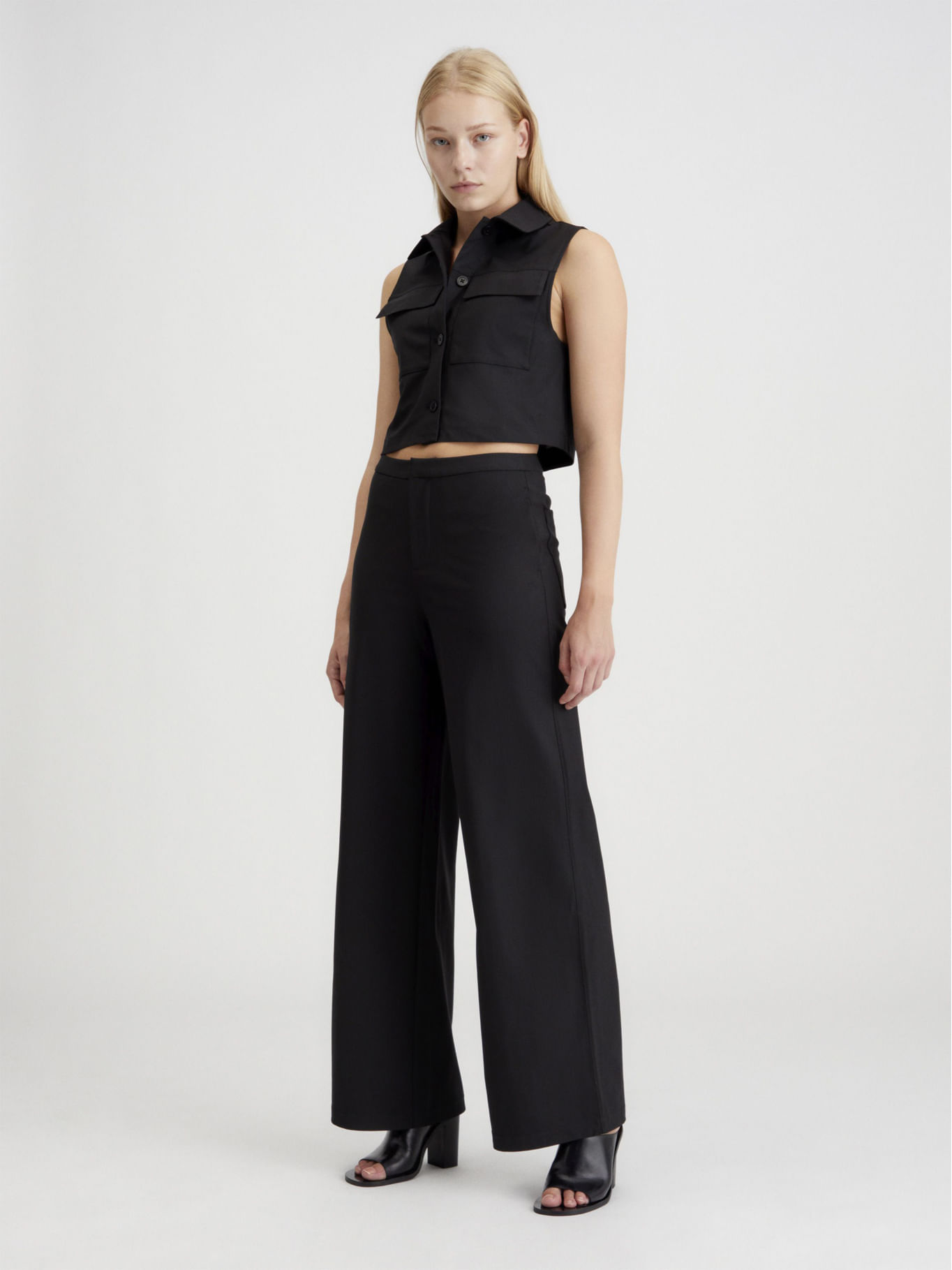 Pantalón Negro De Punto De Pierna AnchaTalles disponibles