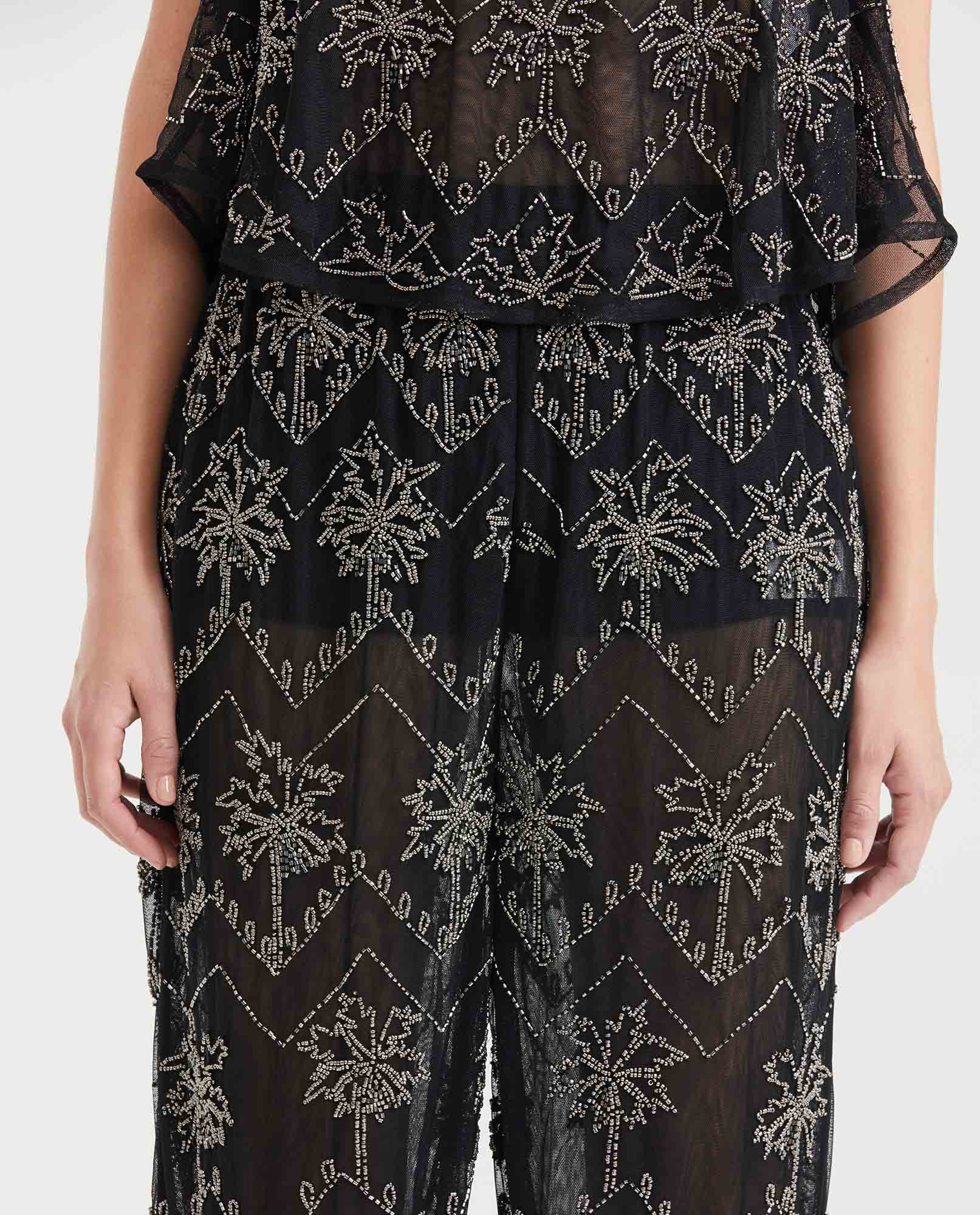 Pantalón Tipo Palazzo Con Bordado En Canutillos Para MujerTalles disponibles