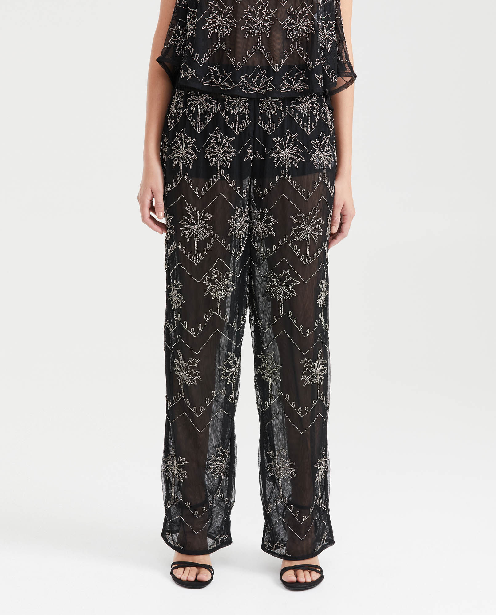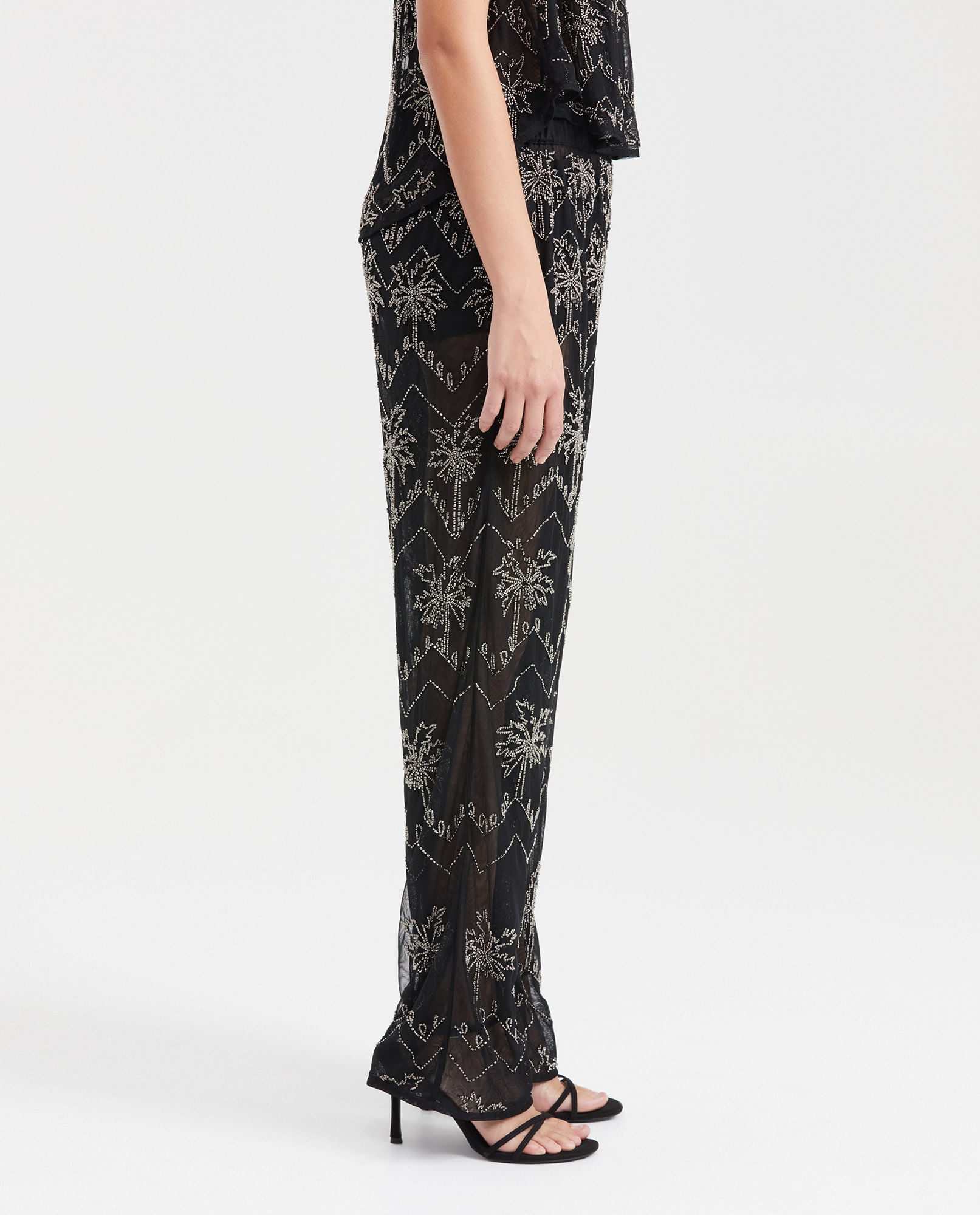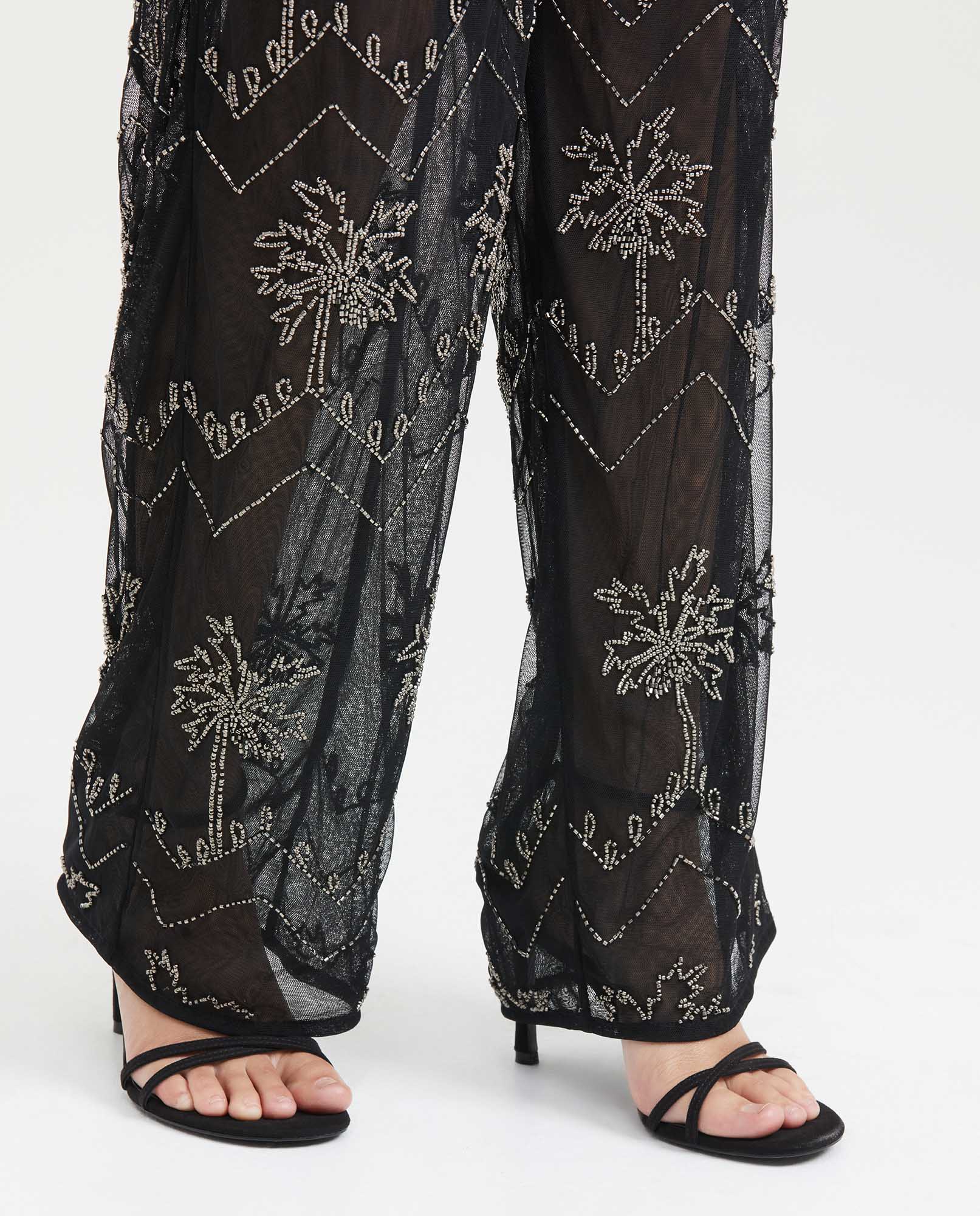 Pantalón Tipo Palazzo Con Bordado En Canutillos Para Mujer