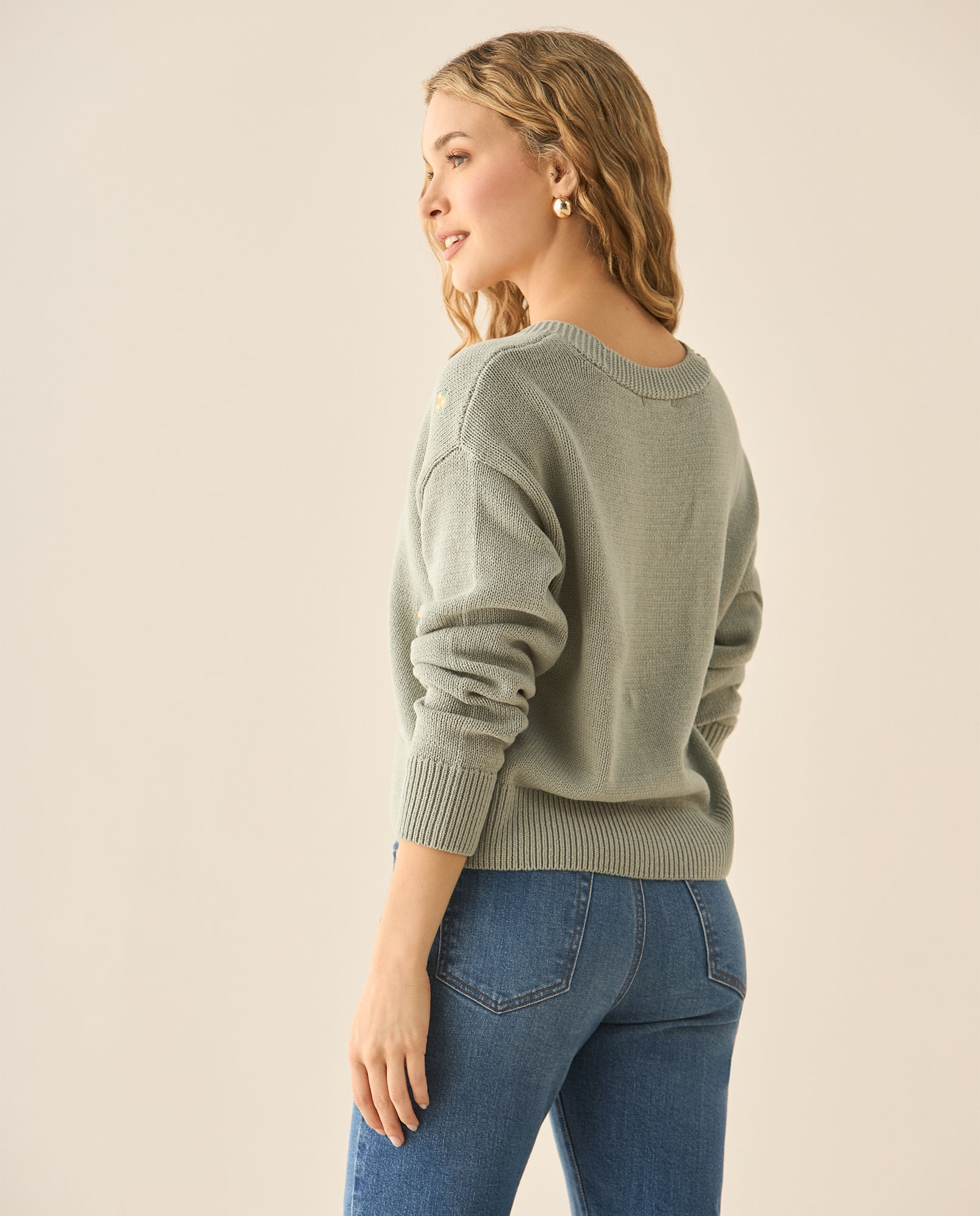 Suéter Tejido Con Detalles Bordados Para MujerTalles disponibles