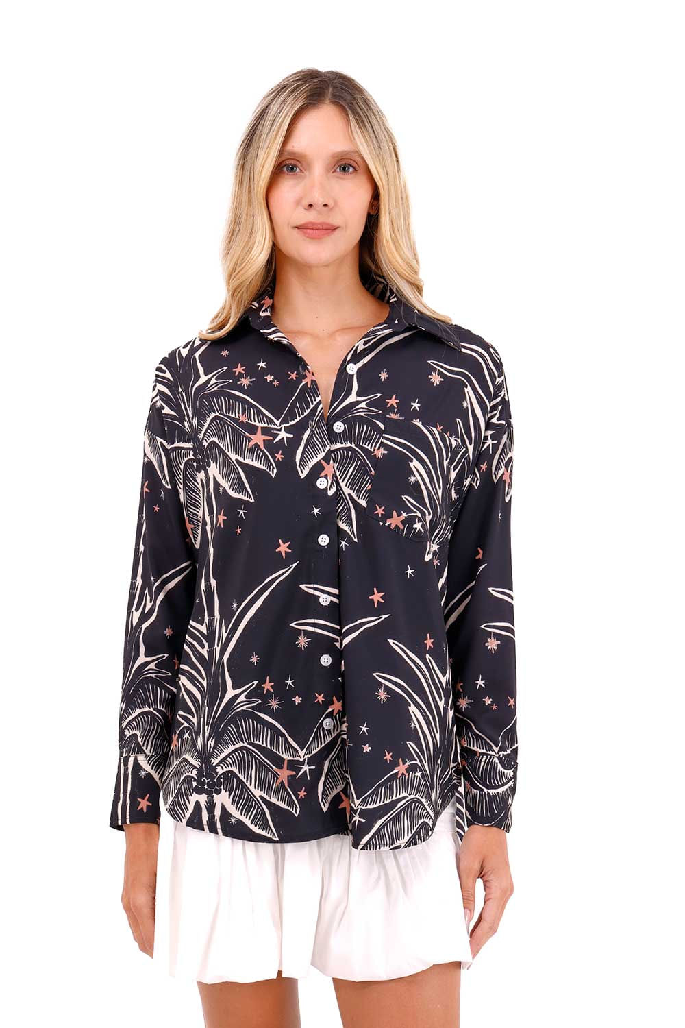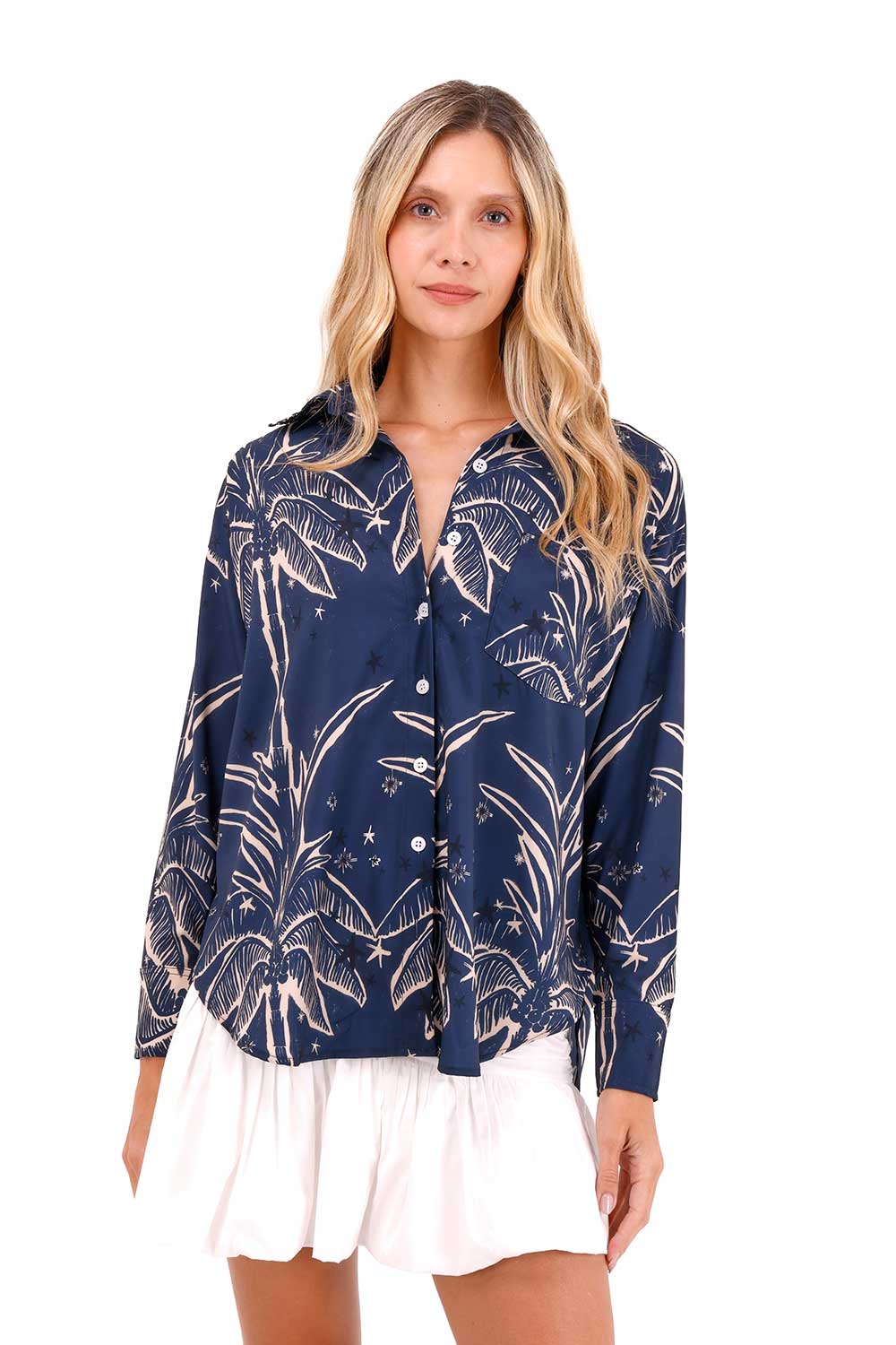 Camisa Boyfriend Haven Palmeras AzulTalles disponibles