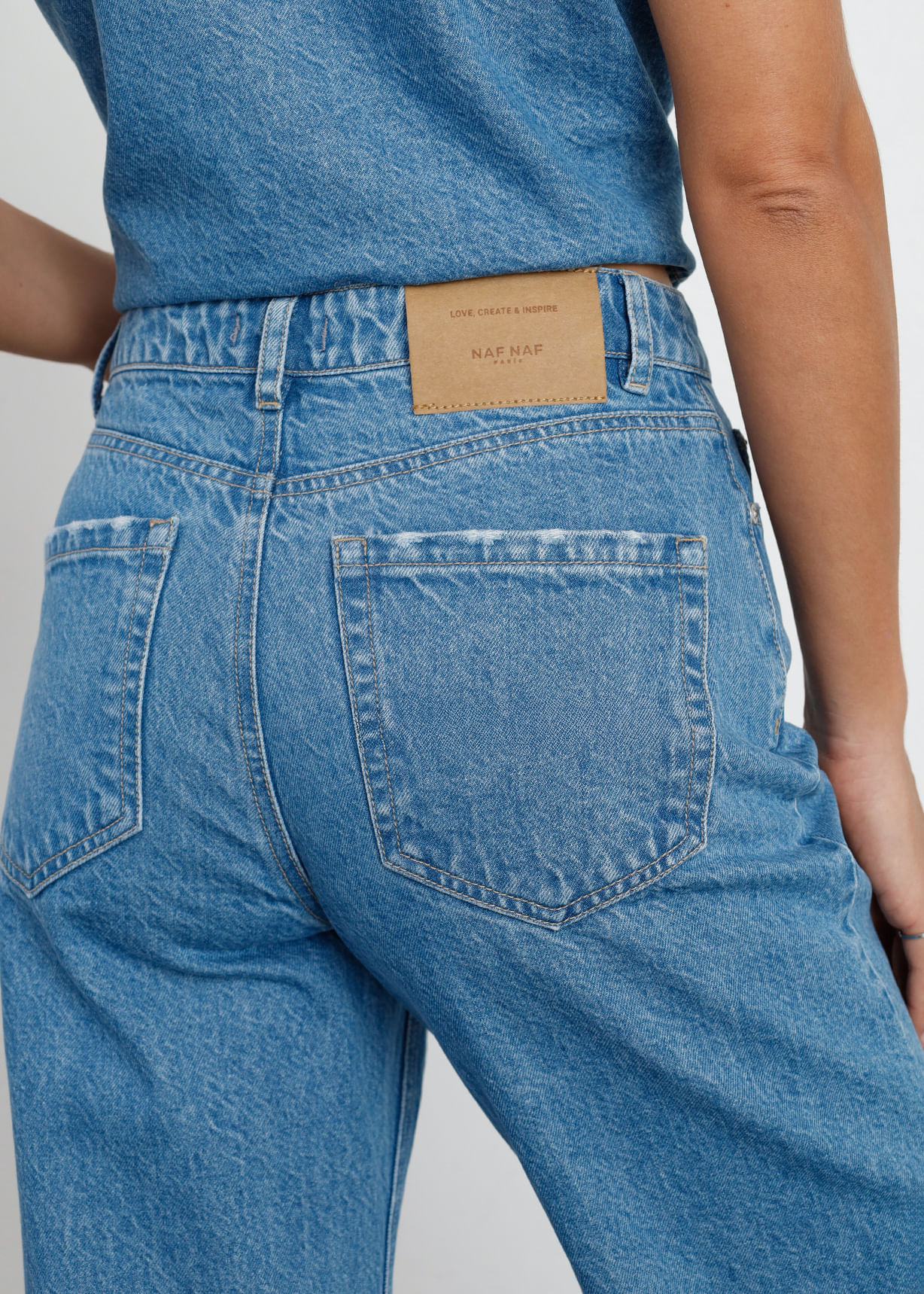 Jean Straight Tiro Alto Con Bordados De FloresTalles disponibles