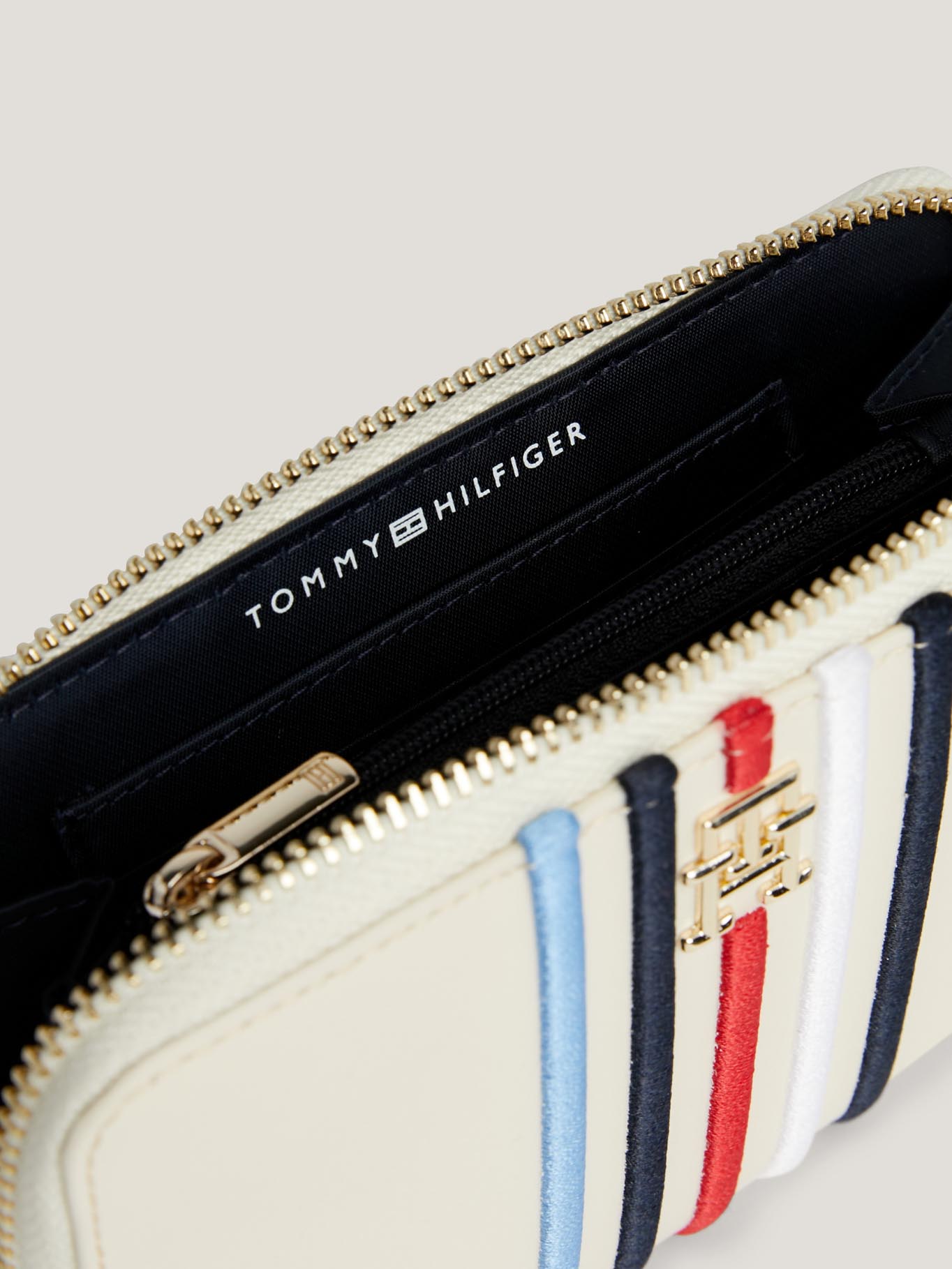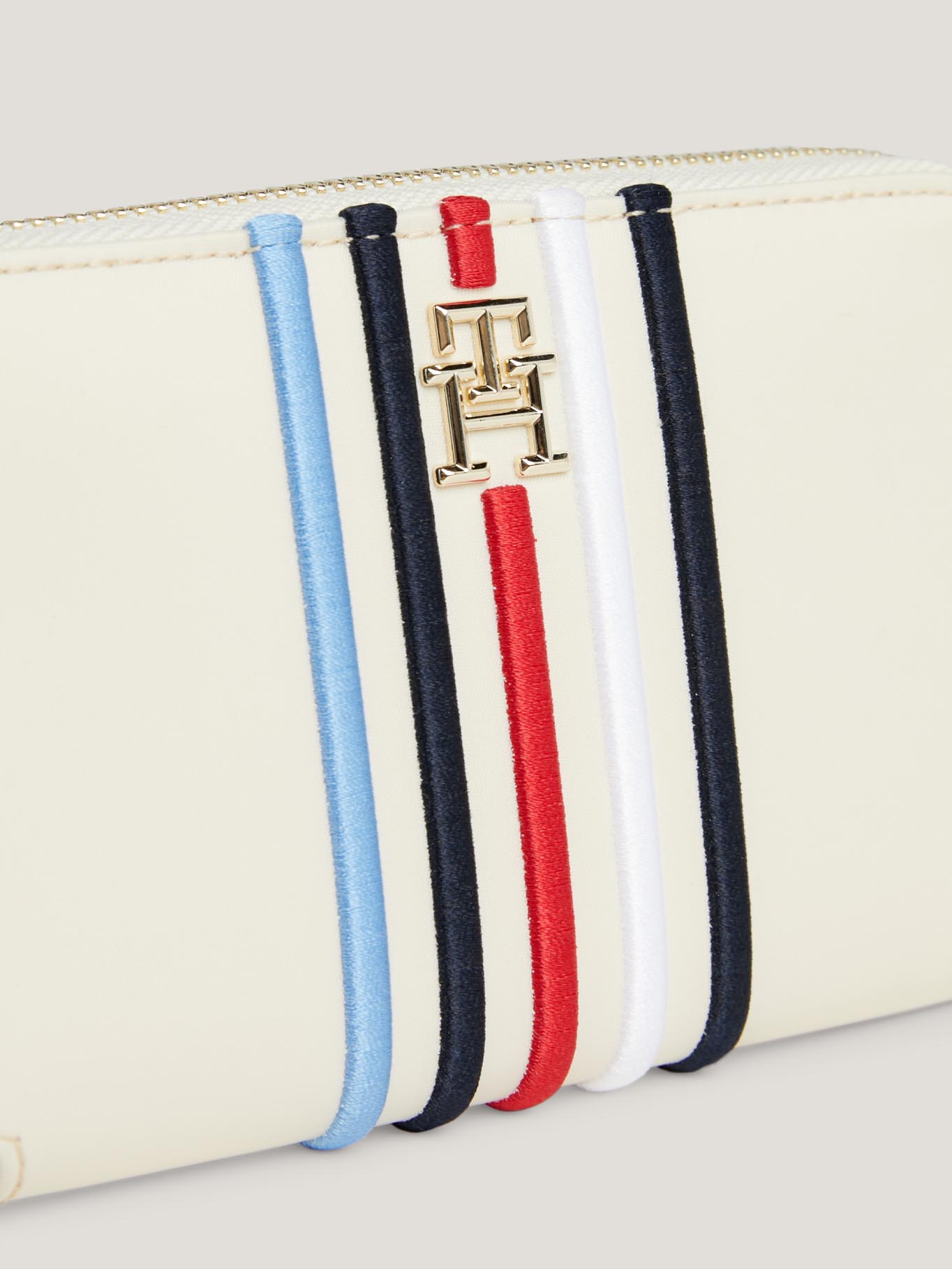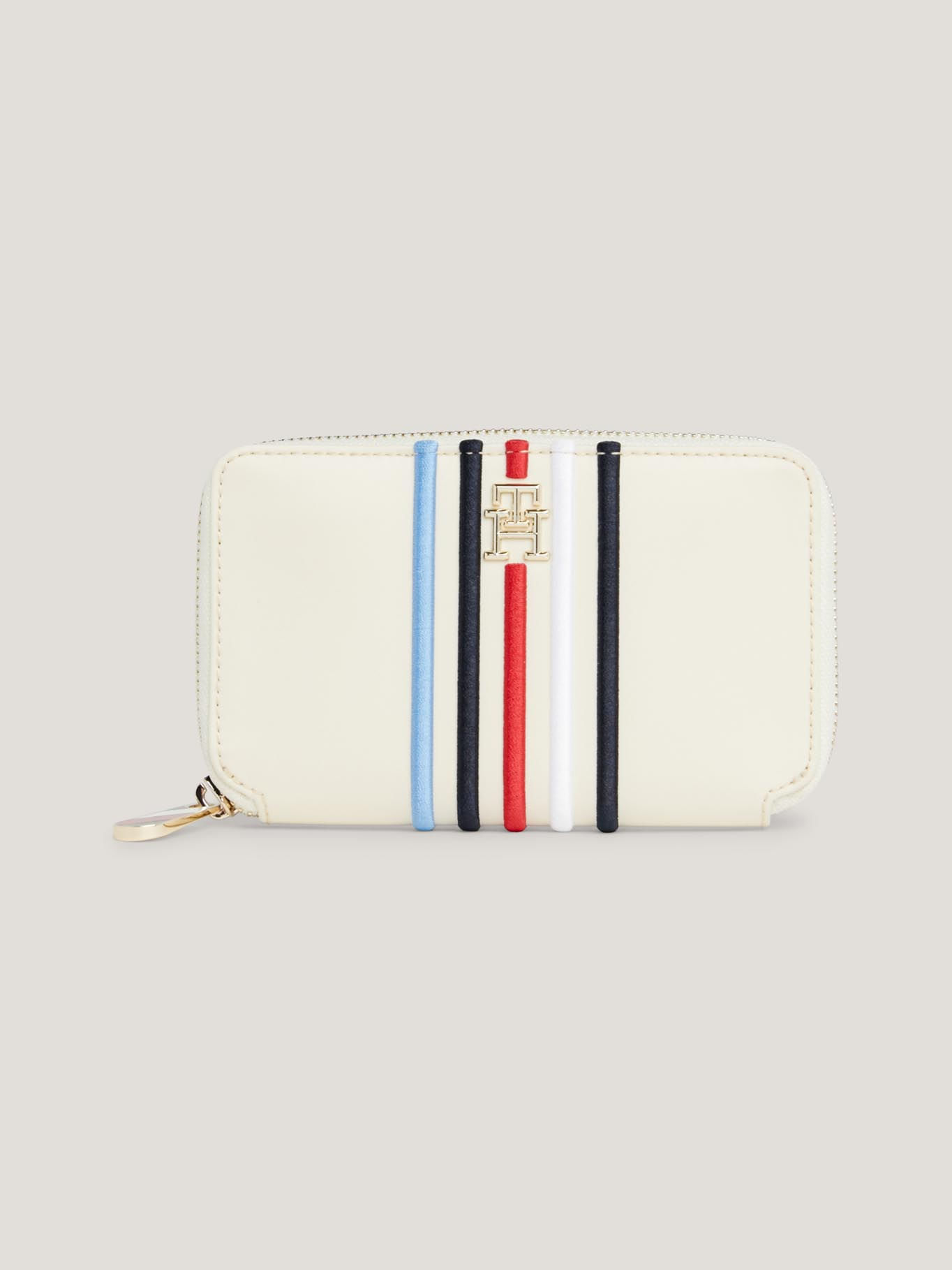 Billetera Blanca Con Cremallera Y Rayas Distintivas