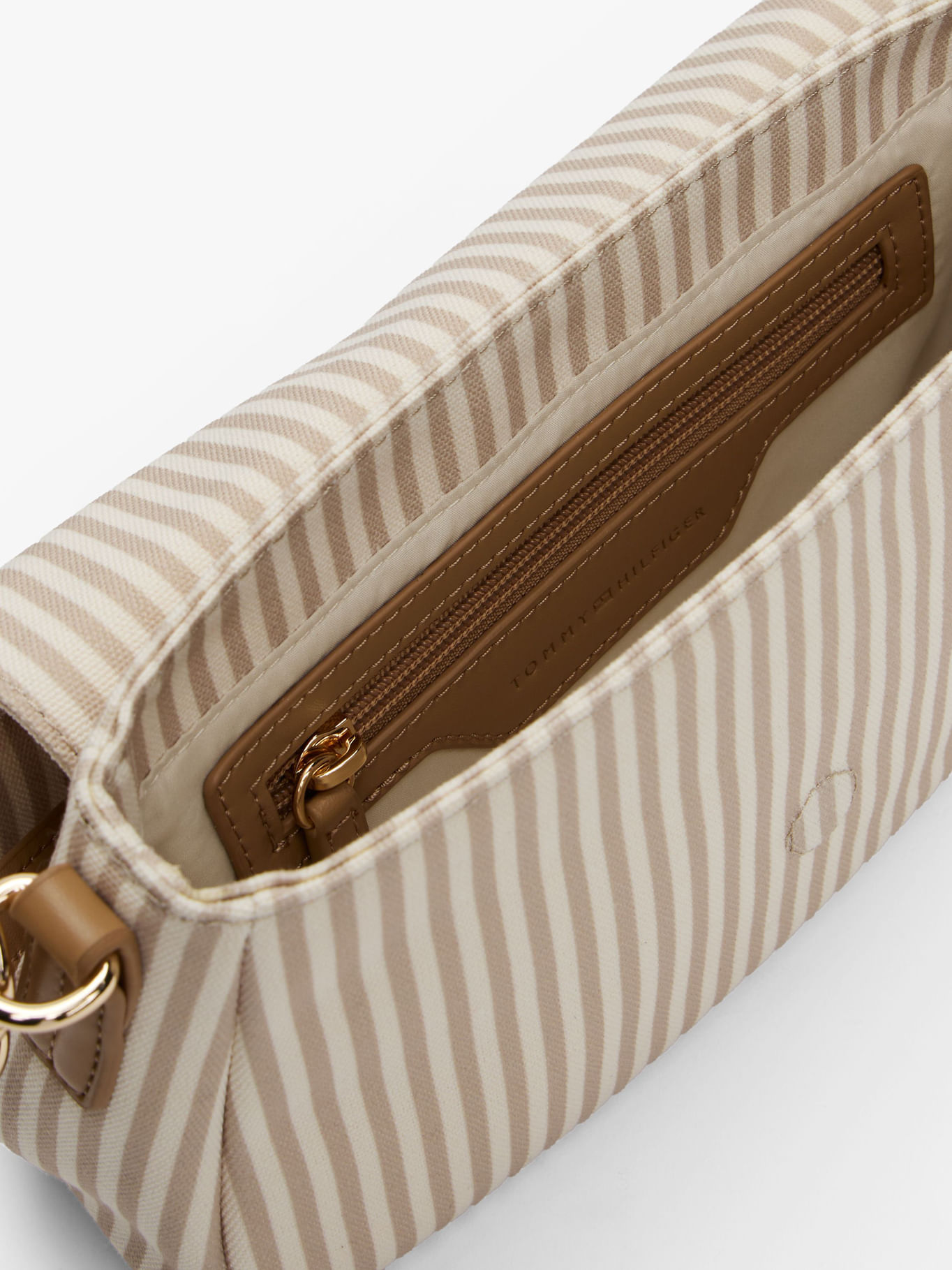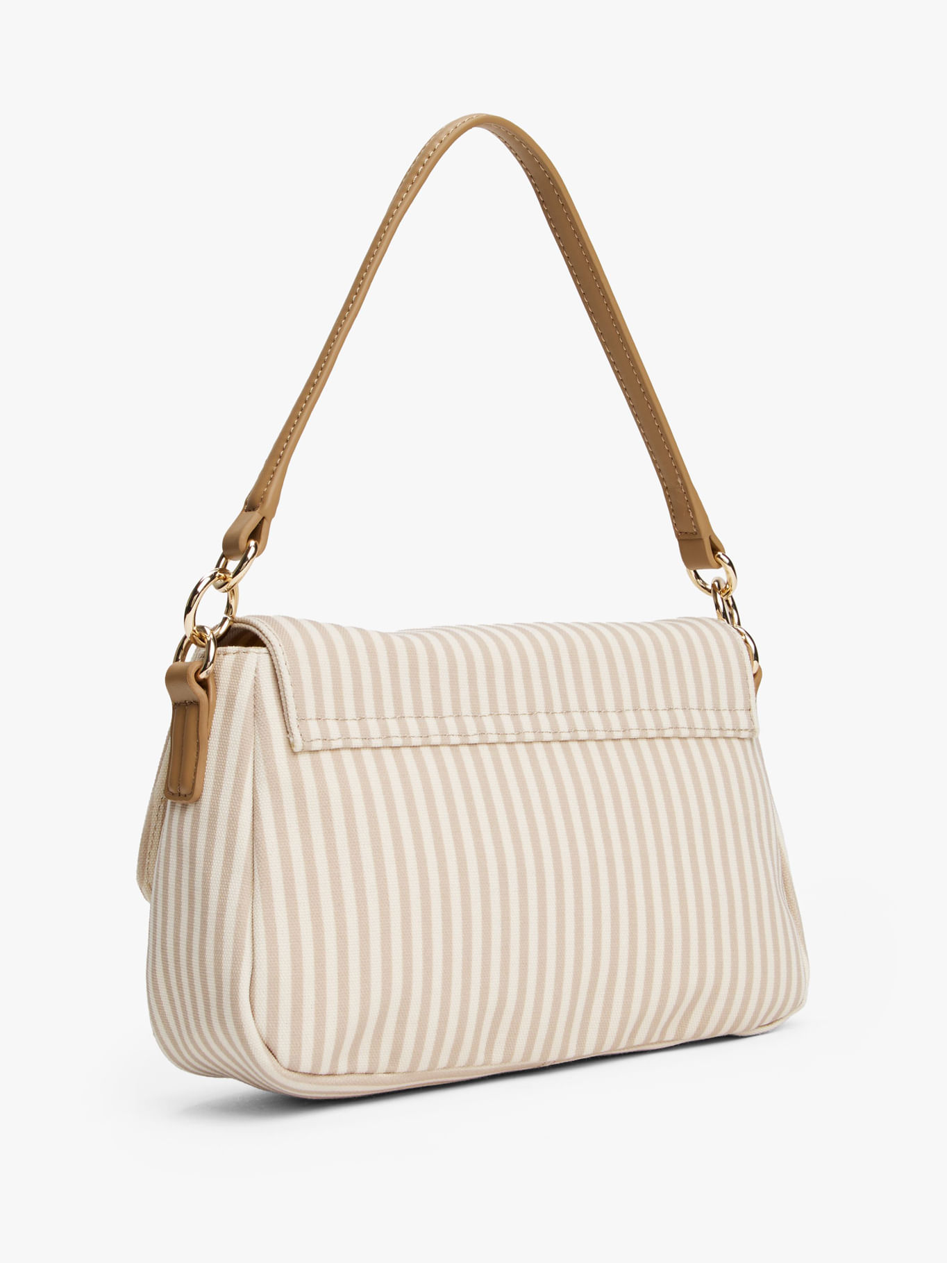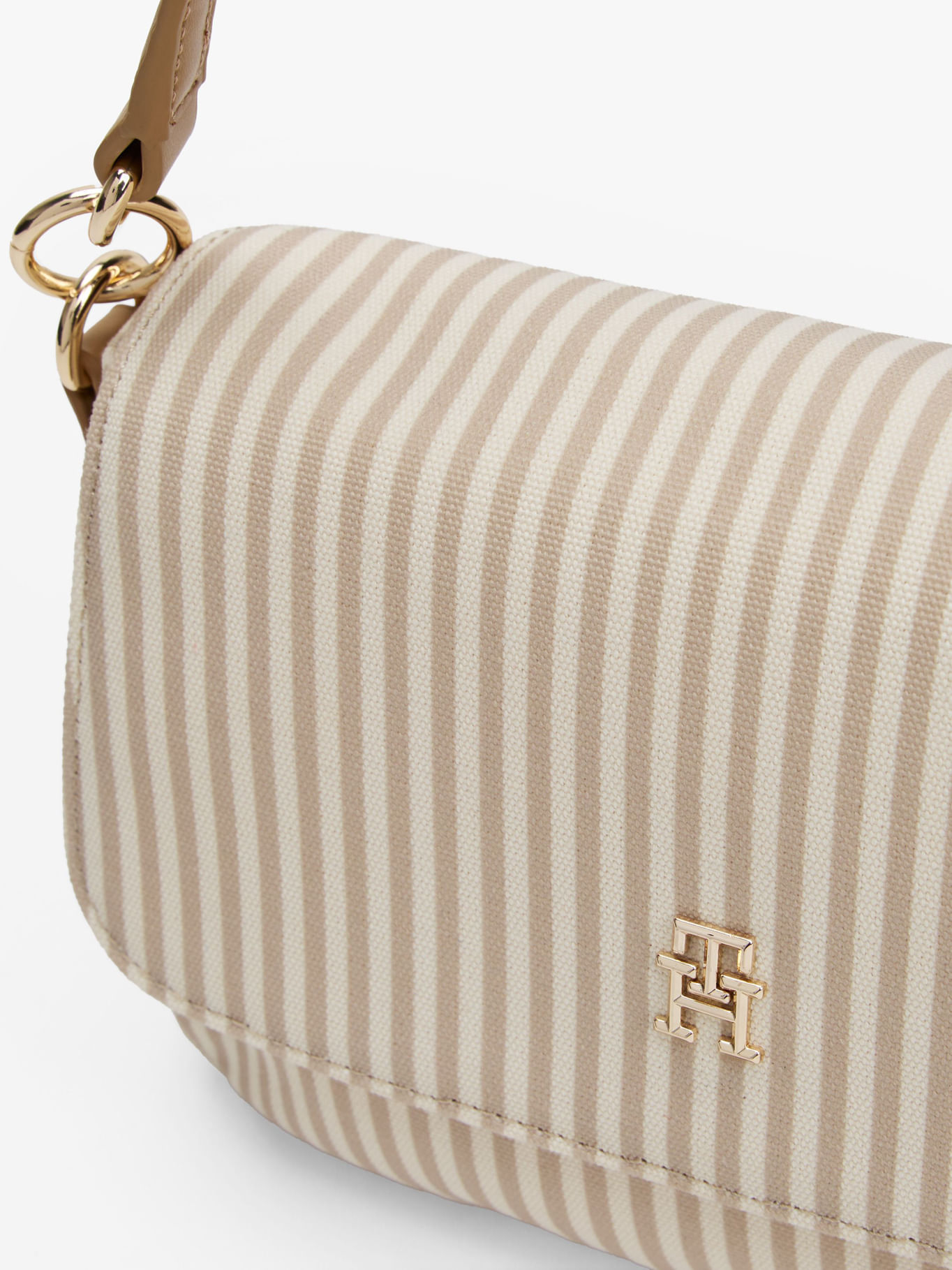Bolso Beige De Hombro Con Correa Cruzada En Lona