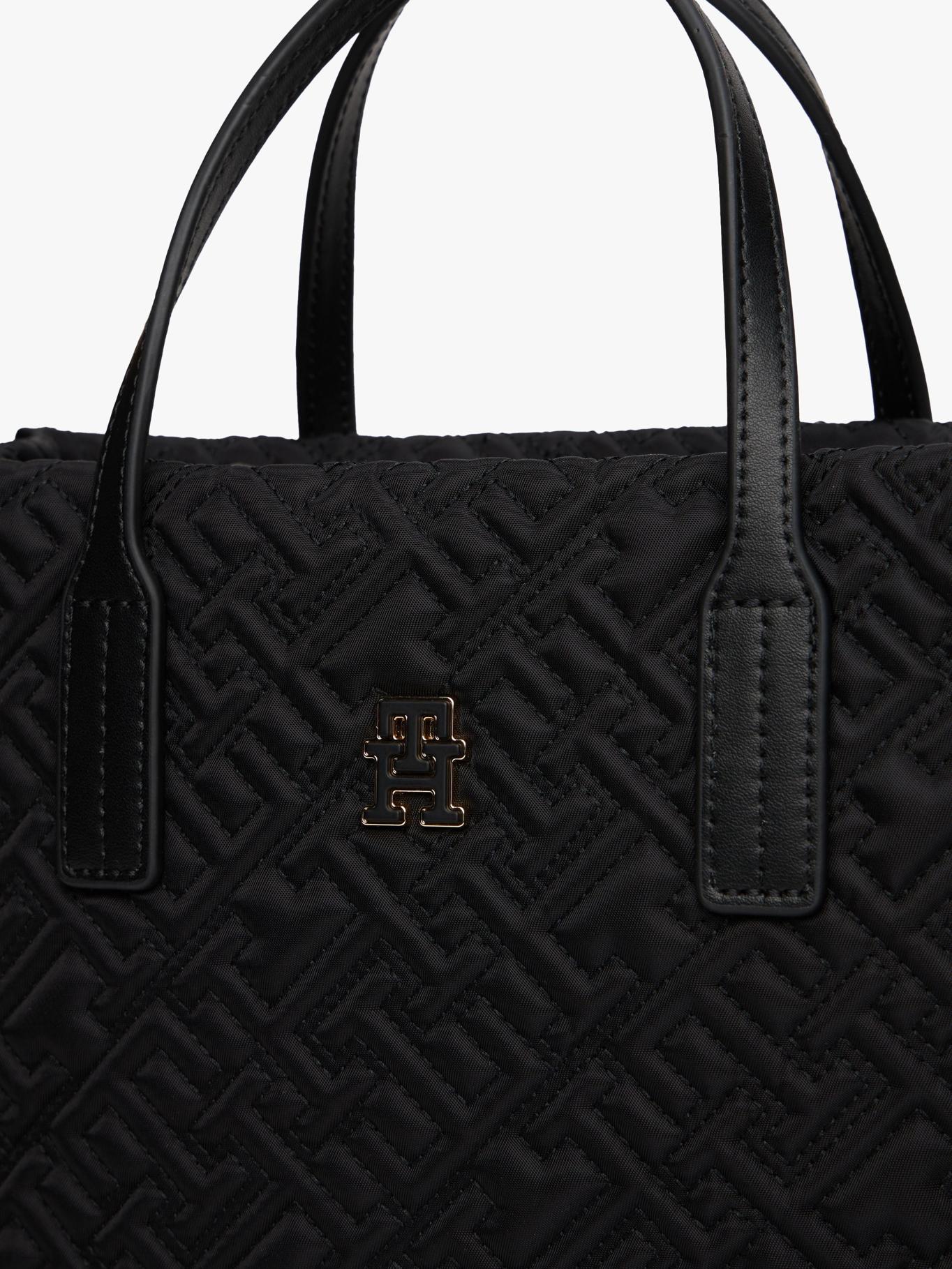 Bolso Negro Mini Tote Con Texturizado Monograma Th