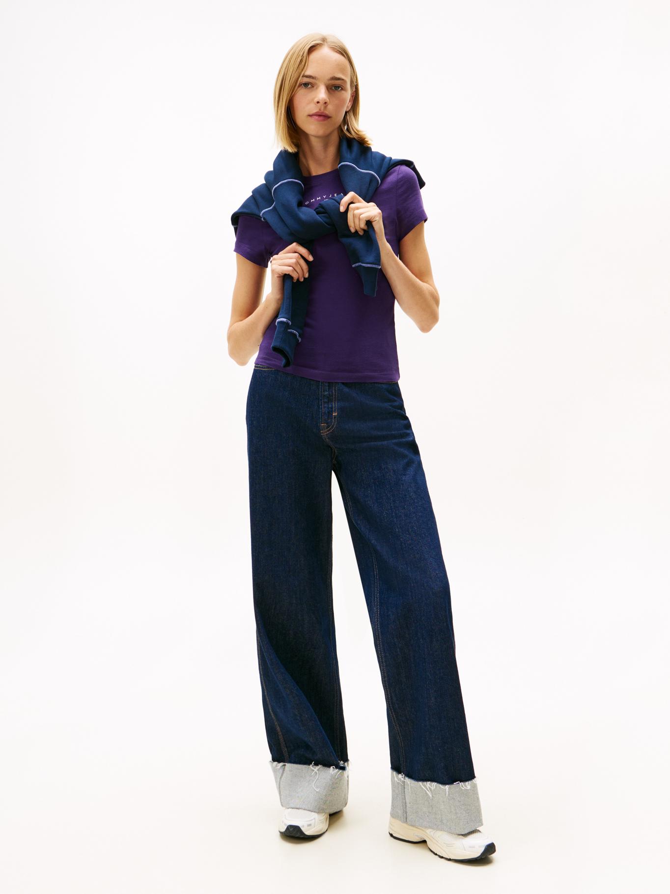 Camiseta Morado De Corte Slim Con Logo Lineal En El PechoTalles disponibles