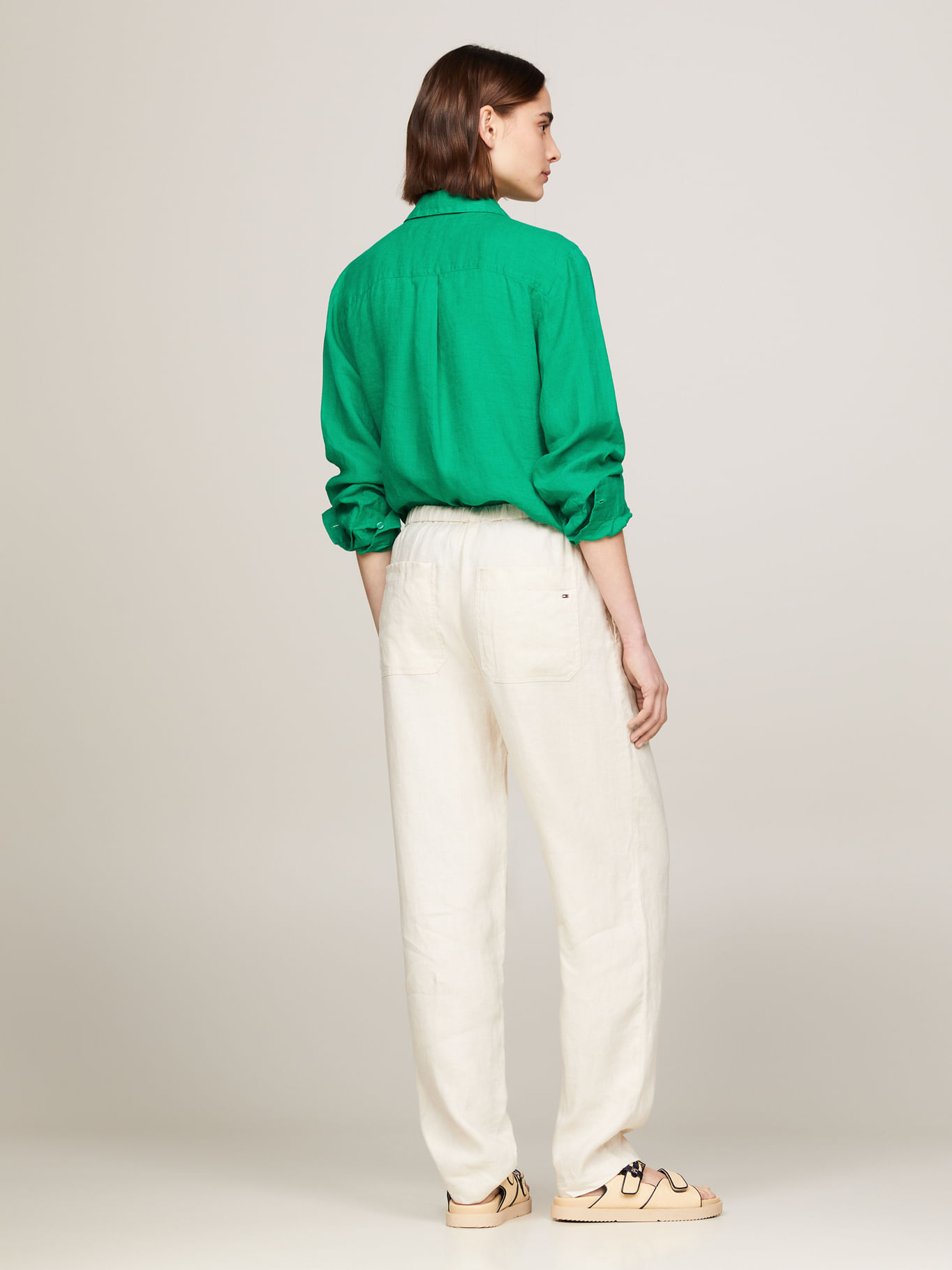 Pantalón Beige Casual Cónico Con Cordón
