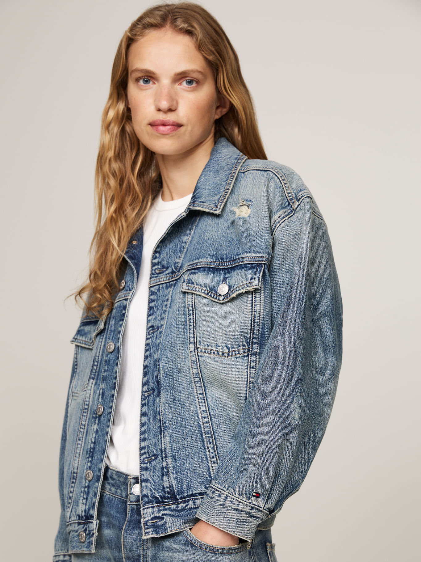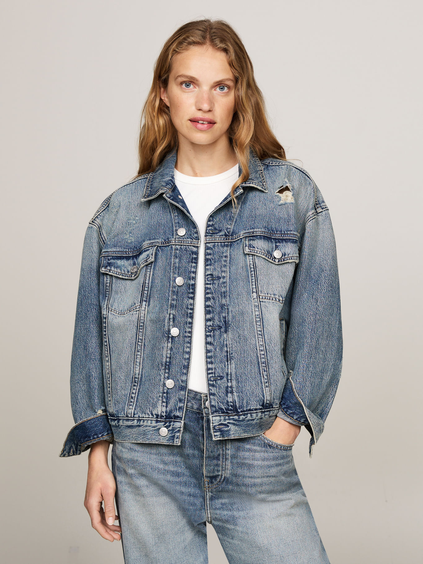 Chaqueta Azul Denim Oversize Desgastada