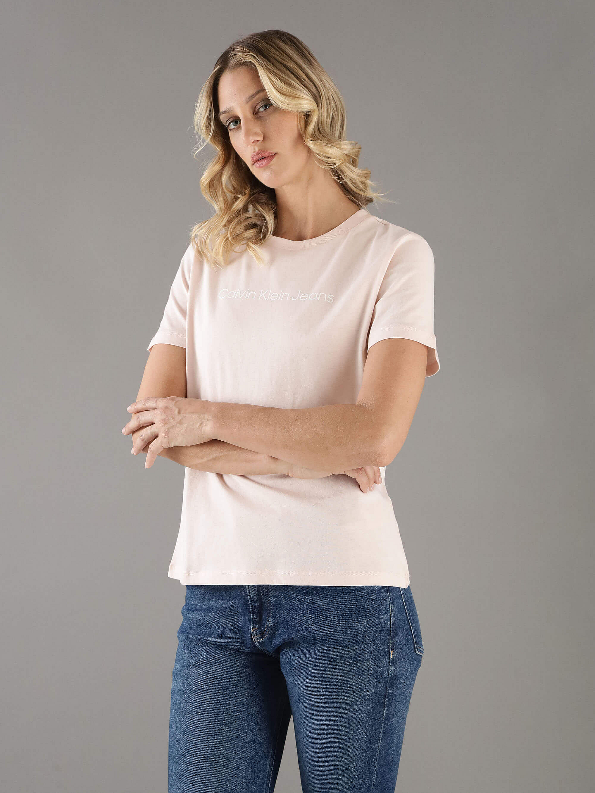 Playera Calvin Klein Con Logotipo Estampado Mujer RosaTalles disponibles
