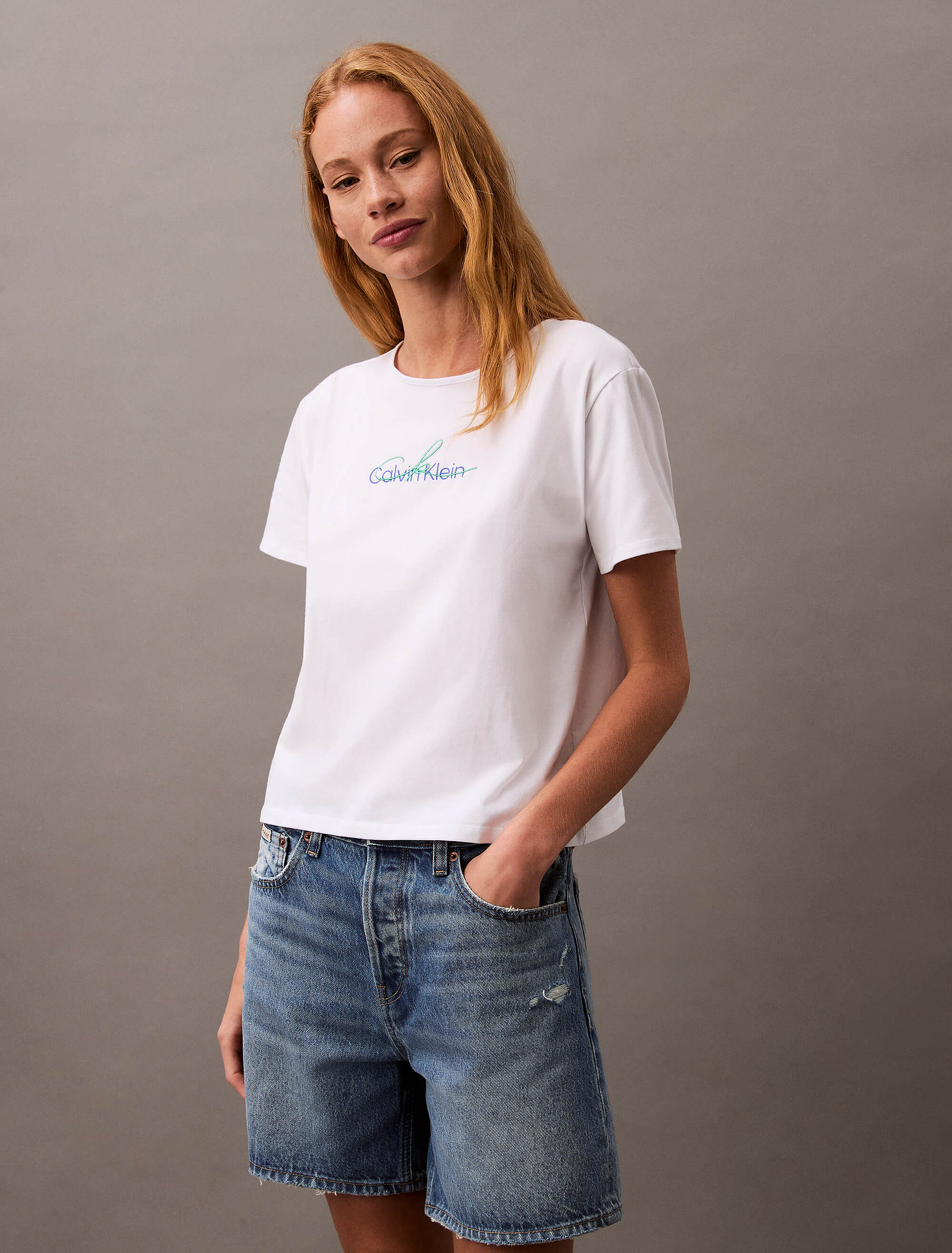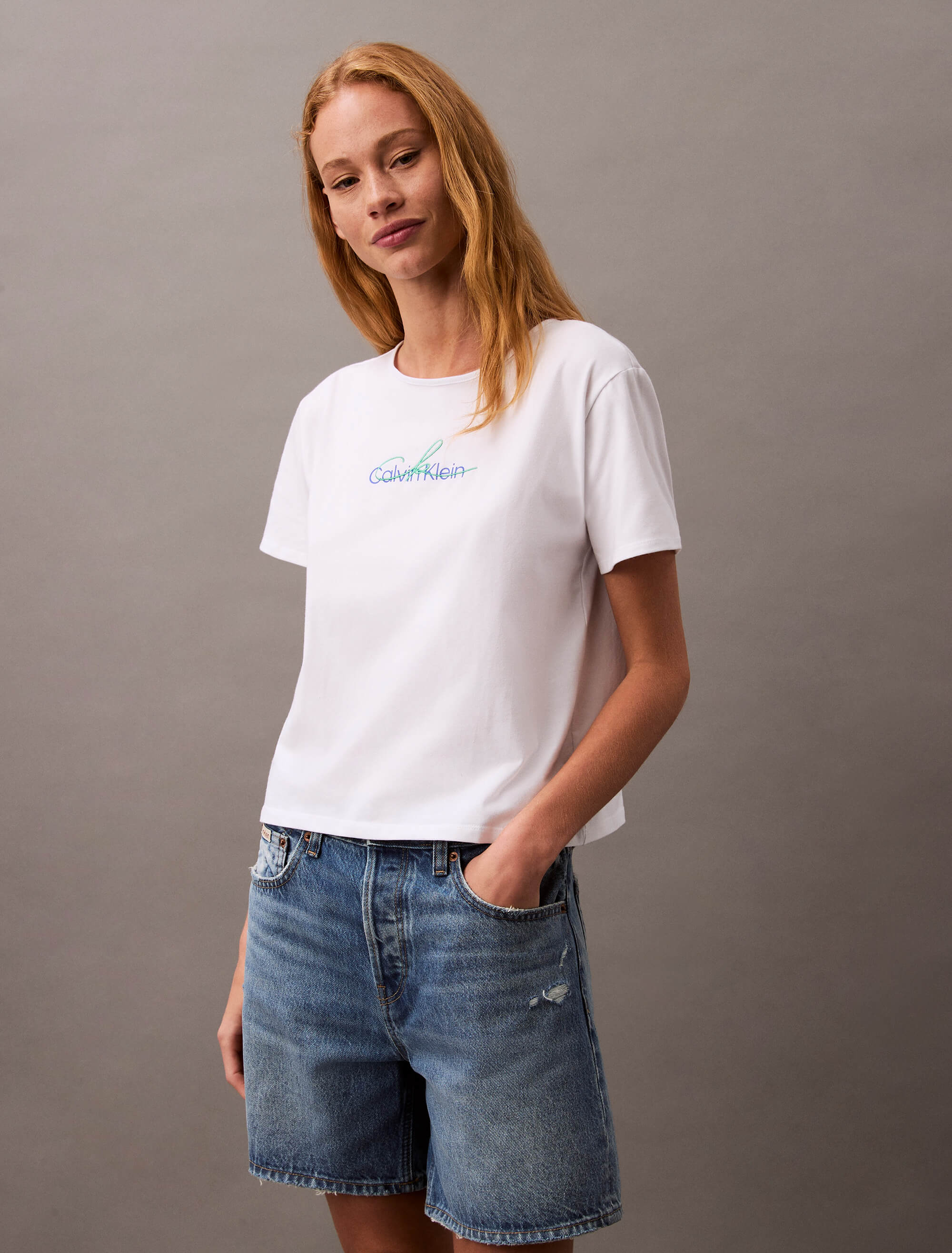 Playera Calvin Klein Slim Estampado Mujer BlancoTalles disponibles