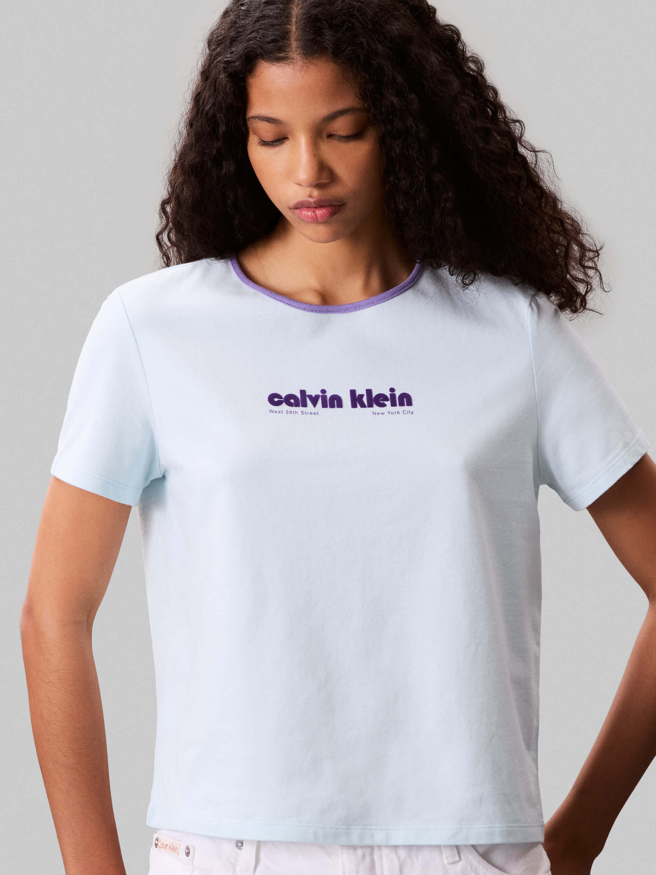 Playera Baby Tee Calvin Klein Mujer AzulTalles disponibles