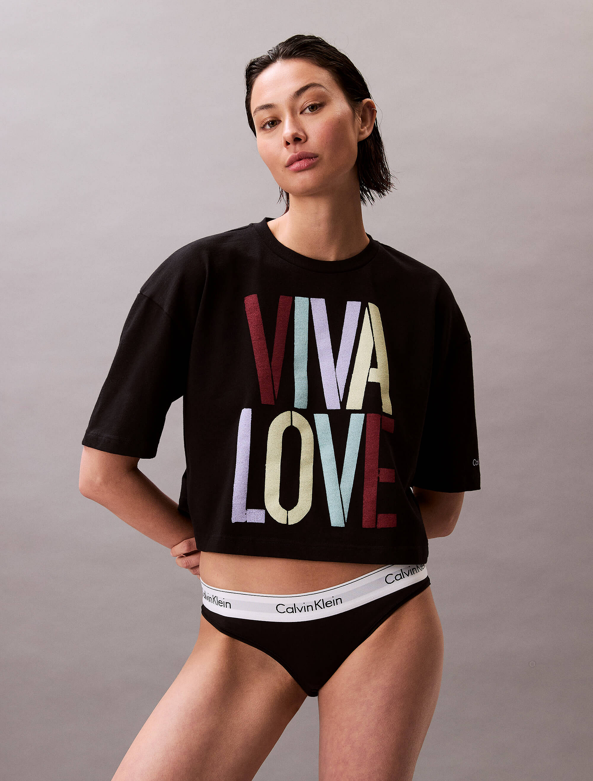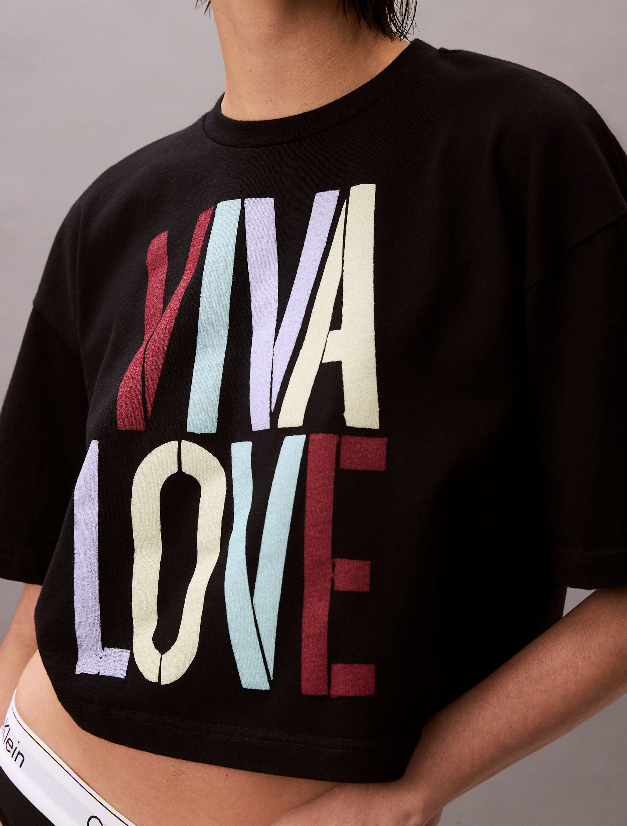 Playera Calvin Klein X Marc Hundley Pride Cropped NegroTalles disponibles