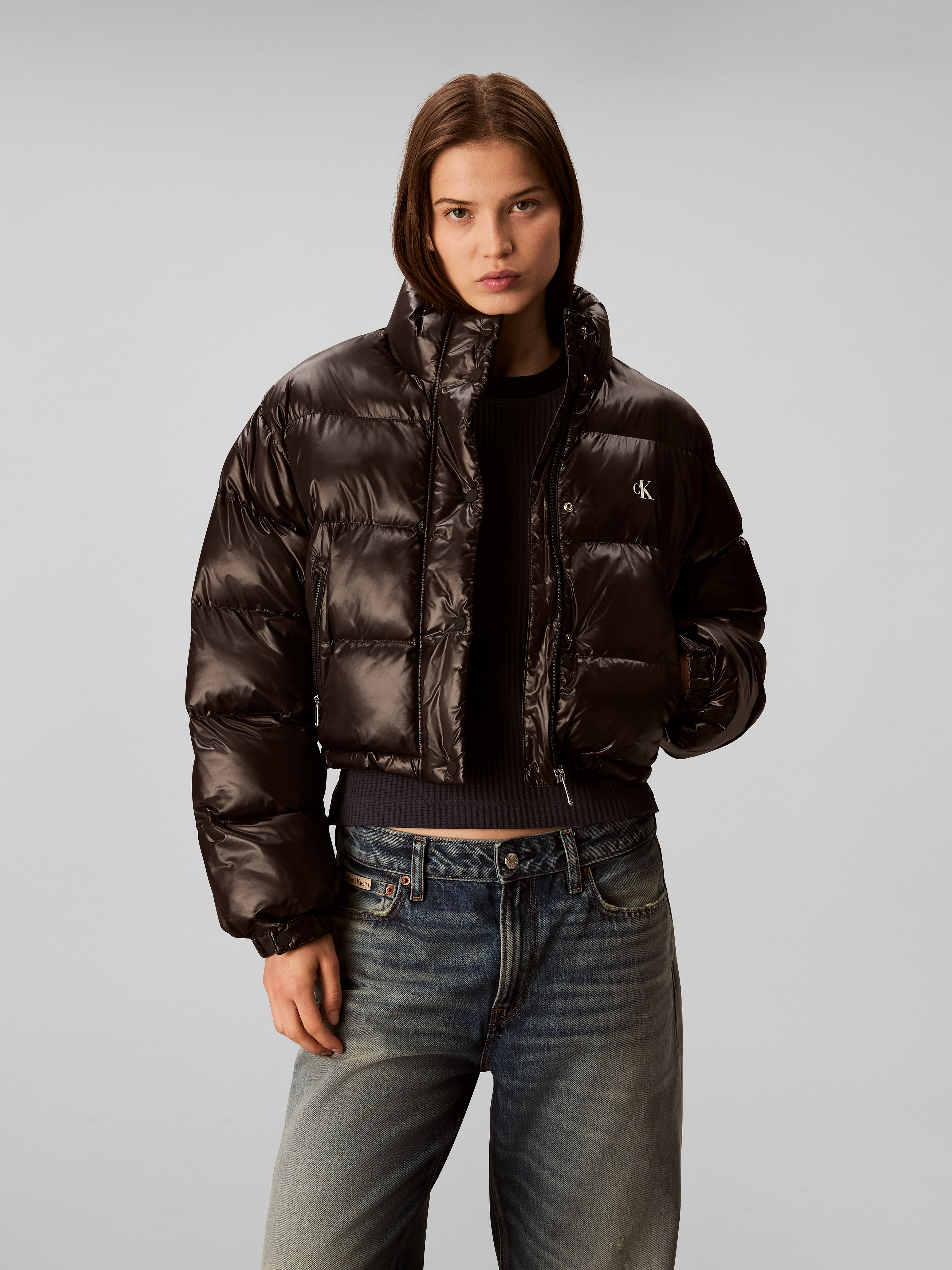 Chamarra Calvin Klein Jeans Cropped Capitonada Mujer NegroTalles disponibles