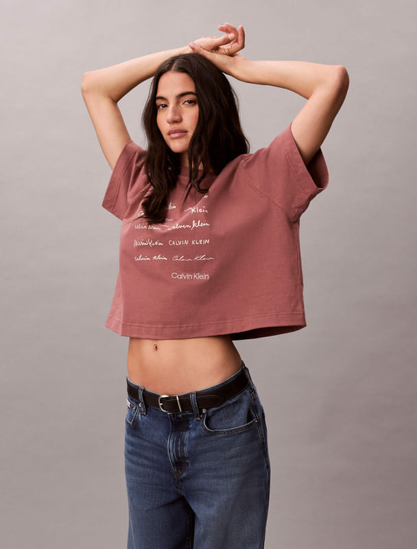 Playera Calvin Klein Cropped Boxy Gráfica Mujer RosaTalles disponibles