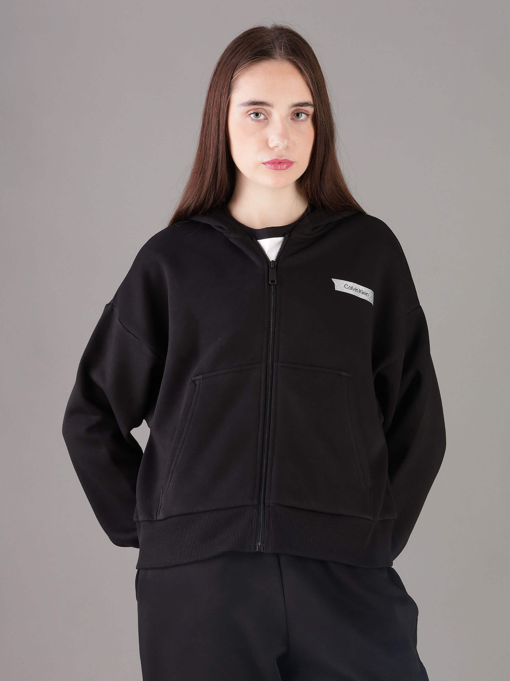 Sudadera Calvin Klein Logo Glitter Mujer NegroTalles disponibles