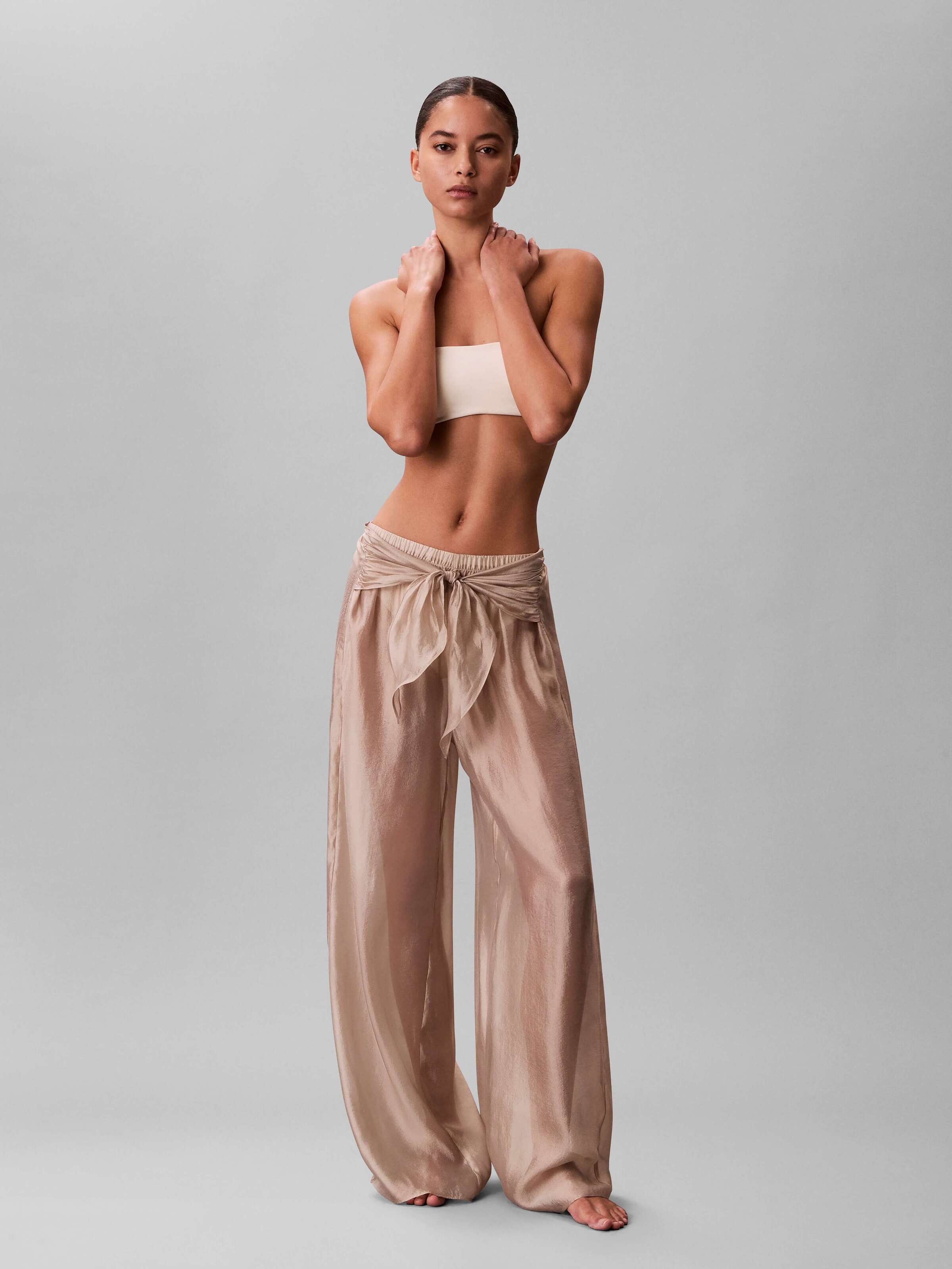 Pantalones Calvin Klein Con Moño Semi Transparente Mujer DoradoTalles disponibles