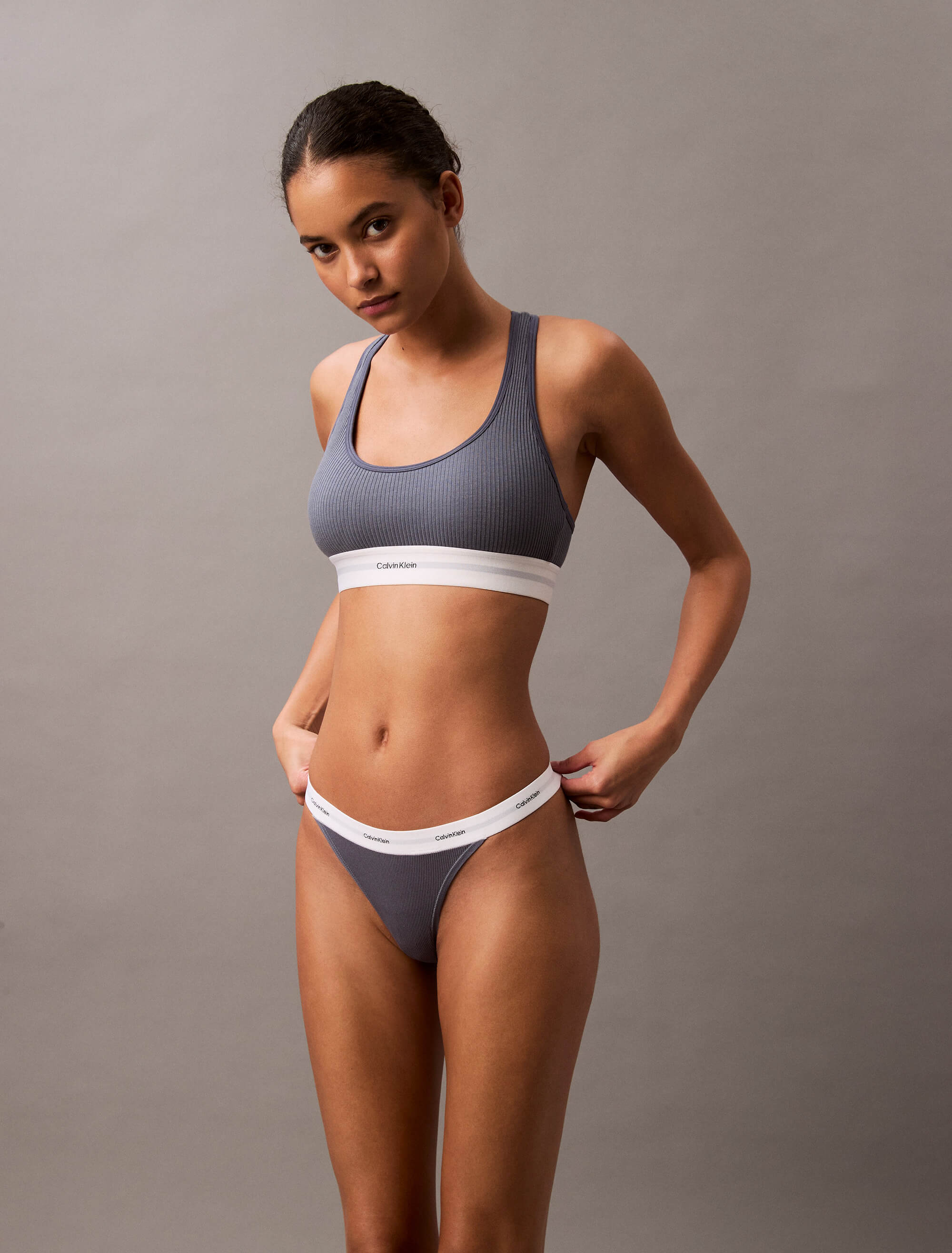 Tanga Calvin Klein Cotton Stretch Rib String Mujer AzulTalles disponibles