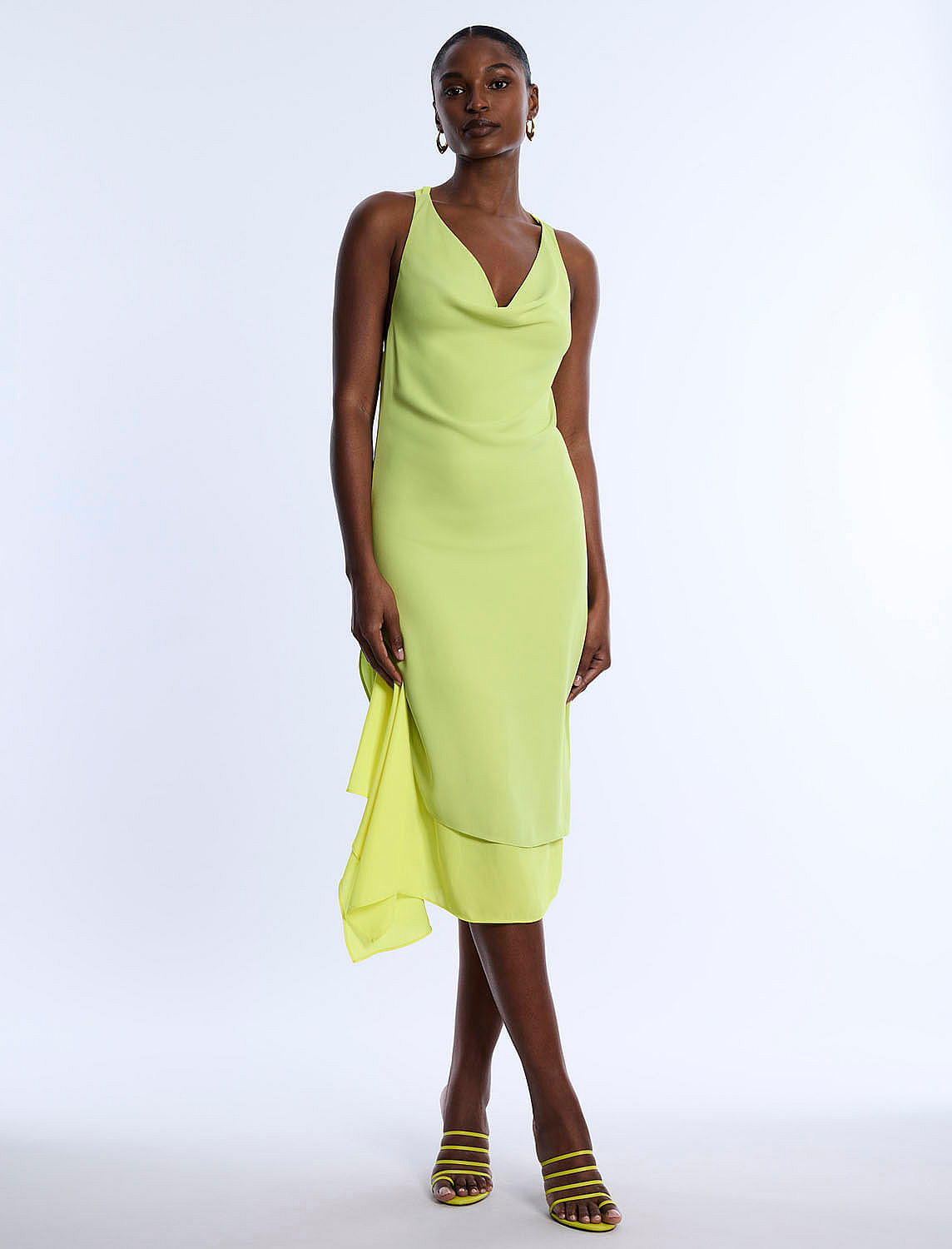 Vestido Midi Escote Desbocado Chiffon