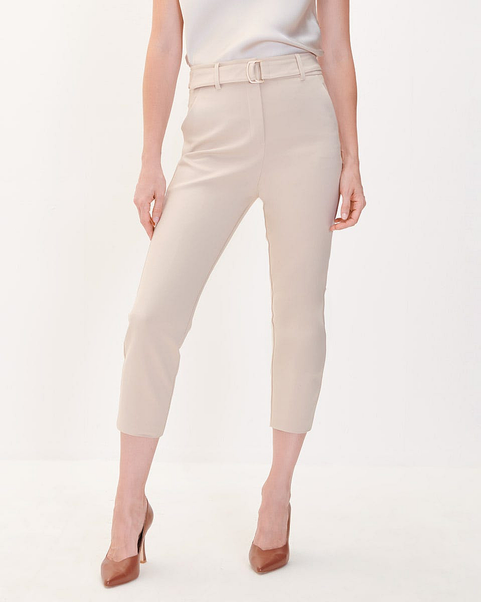 Pantalón Beige Recto Con Cinturón