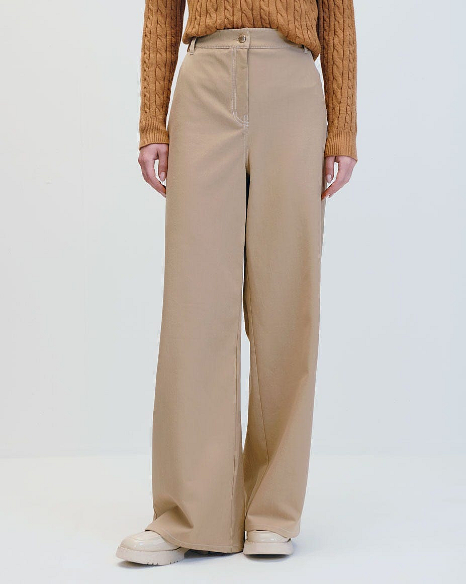 Pantalón Recto Fluido Tiro Alto Tipo Jeans Arena Con Pespuntes