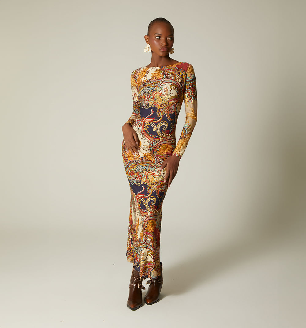 Vestido Largo Manga Larga